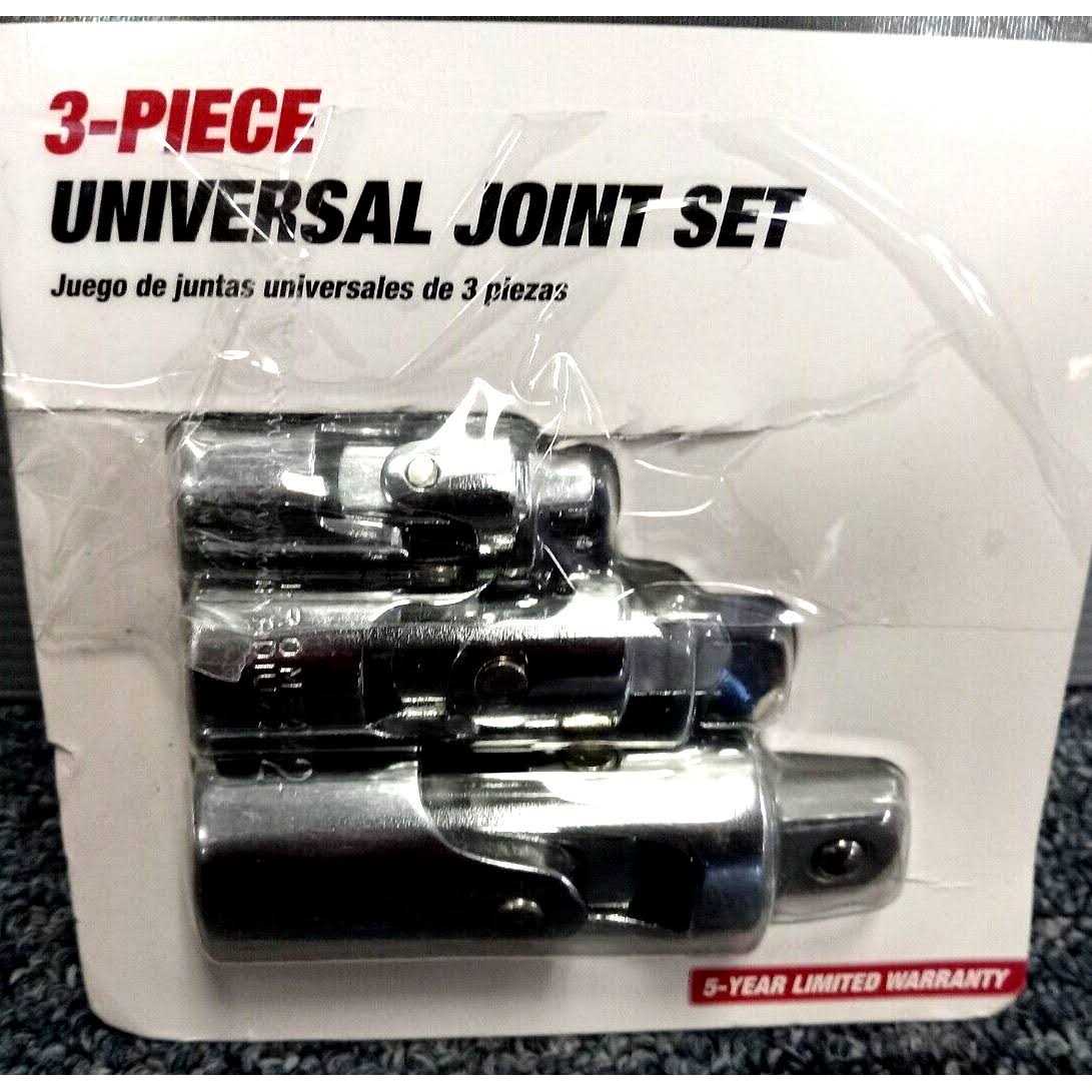 The Hyper Tough UC82051A 3 Piece Universal Joint set is a must addition to any mechanics set. This high-quality set is made from chrome vanadium steel for durability and long life. The high polished chrome finished CR-V provides corrosion resistance for durability and a great look. The set includes 1/4 inch drive, 3/8 inch drive and 1/2 inch drive to cover any mechanics set you may have. The 90 degrees of pivoting action allows you to access bolts in tight spaces and work around obstructions and attain access in off position settings. Each has a spring-loaded detent ball for maximum hold on the socket to prevent accidental pull off. Detent notches in the socket end give maximum hold on any ratchet or extension. Steel pins allow for greater torque to remove bolts.