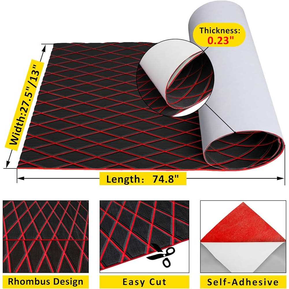 The process and technology have been upgraded to achieve a larger size, and the pattern and texture sizes are exactly the same. Multiple products can be completely spliced together (No splicing errors will occur), suitable for all large and small boats, and the unique diamond shape is more refined. Beautiful. Dimensions: 94″X 44″X28″X16″, 74.5″X28″, thickness: 0.23″ Available in a variety of sizes and colors. Choose a color to decorate and renovate your boat today! Product design: Patented U-shaped groove foam flooring, using professional marine glue (with adhesive backing) to better fit the hull. The double-layer 6 mm thick two-color splicing is a very beautiful design combination and is easy to cut. It can decorate your boat well, the U-groove drainage design prevents slipping, you can walk on it without worrying about slipping, and it can be easily cut into any non-slip or protective hull shape you want to install on your boat. High-quality materials: EVA foam boat deck is made of ethylene-vinyl acetate (foam rubber), which has excellent heat insulation, cold protection, and low-temperature properties, can withstand severe cold and exposure, and has a long service life. Resistant to sea water, grease, acid and alkali, not easy to tear or damaged, safe and durable. It has good shock absorption and buffering properties. Pads, surfboard pads, swim deck platform pads, swimming pool pads, RVs, gardens, fish boxes, etc. All boat types are suitable for installation. Installation instructions: You need to spread and flatten the foam floor one day in advance before using it, at this time you can clean your boat and keep it clean and tidy. br br The boat floor foam has been flattened and easy to cut after being spread overnight. You can draw lines with transparent film on the boat or cut the shape you want with a piece of paper, and then put the transparent film you drew on the foam floor. It will not appear when the product is spread out and flattened. br br The floor should be cleaned before installation. It has strong adhesion on a flat and smooth surface.