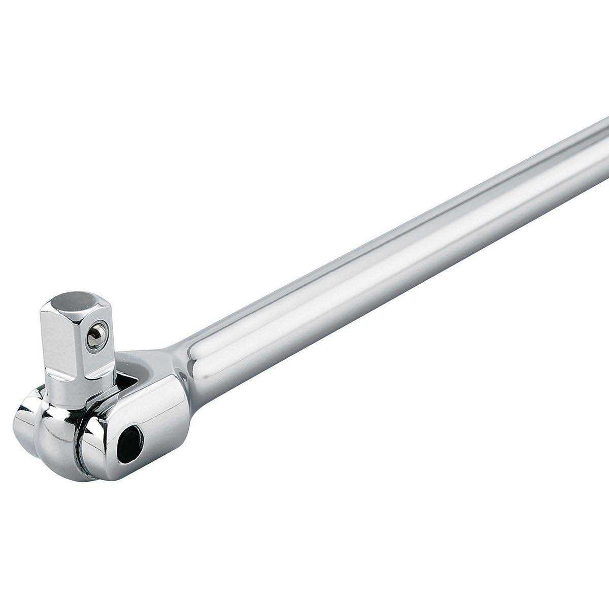 High alloy steel construction gives this 1/2 in. breaker bar the strength to handle heavy work. The drive end of the breaker bar has a 180° pivot to get the best angle on your work.