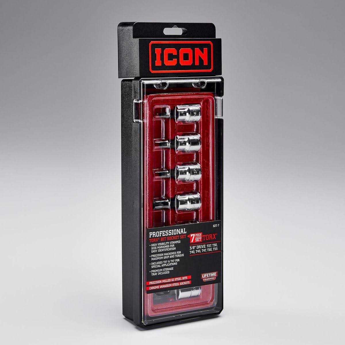 The ICON Professional TORX Bit Socket Set is constructed from precision-machined S2 steel for maximum grip and torque. The high-polish finish resists corrosion and wipes clean easily.