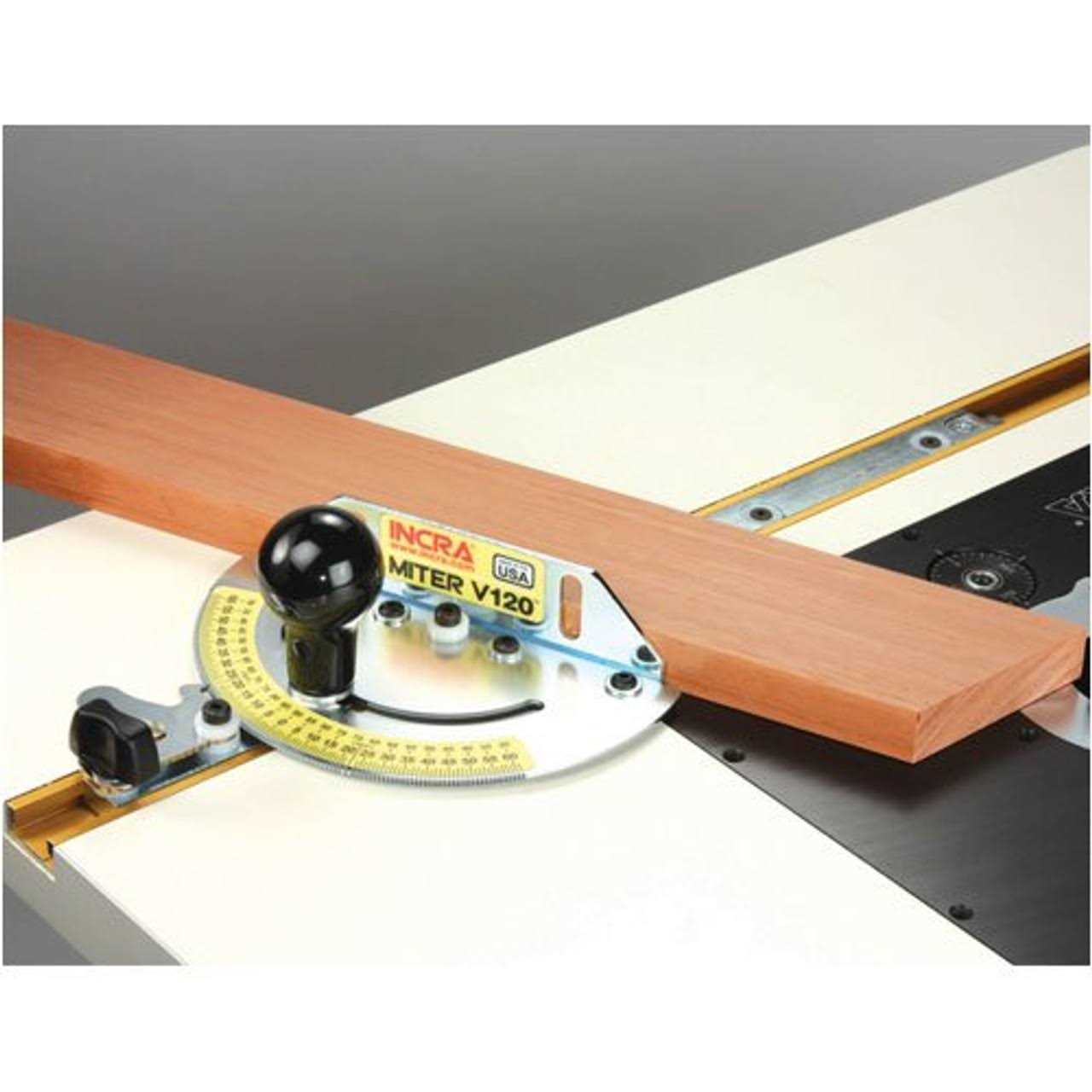 Don’t let the small size fool you! The NEW INCRA Mitre V120 puts high-resolution, repeatable accuracy within the budget of every woodworkers. An incredible 120 angle stops are laser cut into the steel protractor, with a stop available for every whole degree and two special stops at 22.5 Degrees for cutting eight-sided frames and mouldings. Don’t let the small size fool you! The NEW INCRA Mitre V120 puts high-resolution, repeatable accuracy within the budget of every woodworkers. An incredible 120 angle stops are laser cut into the steel protractor, with a stop available for every whole degree and two special stops at 22.5 Degrees for cutting eight-sided frames and mouldings. All of that precision is built into a sturdy, no-fuss package that’s compact enough to fit machines where other mitre gauges can be a tight squeeze, such as band saws and disc sanders. All-steel construction makes it an excellent long-term investment, and it’s also upgradable as your needs change – the V120 can be equipped at any time with any IncraLOCK mitre gauge fence and stop. The steel mitre bar is equipped with four patented GlideLOCK adjustment points for a perfect, low-friction fit in a wide variety of machines using a standard mitre slot. As with all INCRA crosscutting tools, a removable T-slot retaining clip is included, and the adjusters are accessible from the top for quicker set up than traditional mitre bars with side-mounted adjusters.