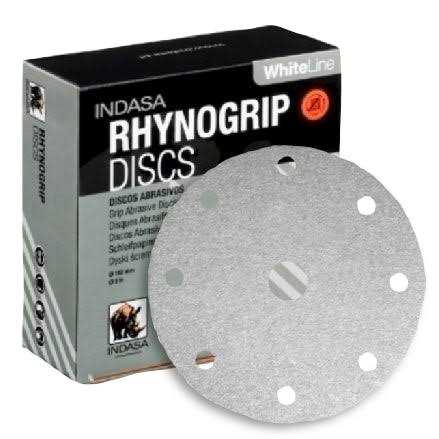 Indasa 5″ 8-Hole WhiteLine Rhynogrip Vacuum Sanding Discs (55 Series) are Indasa’s line of production grade sandpaper that offer the best balance of productivity, quality finish and cost effectiveness. WhiteLine abrasives are the best option when a very high initial cut and lower costs are desired.