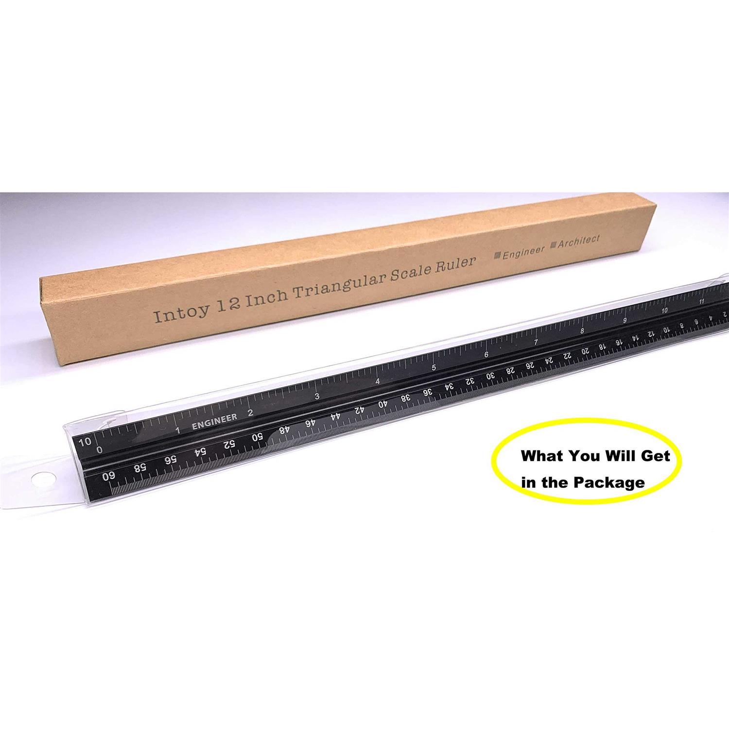 Intoy 12 Inch Triangular Engineer Scale Ruler Anodized Solid Aluminum Core with Laser Etched Scales