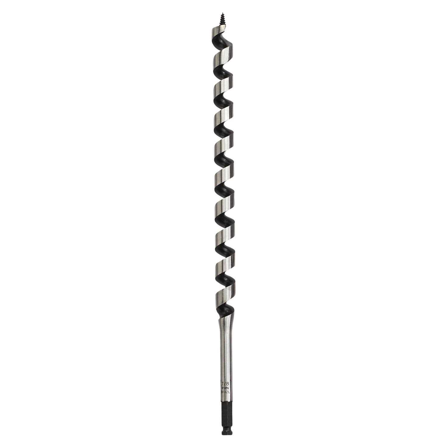 The IRWIN WeldTec 7/8-inch Auger Bit features a hard cutting edge that is welded to the base material for improved strength and durability. The welded cutting edge on each WeldTec auger drill bit provides an extended cutting life. Wide flutes and a 7/16-inch quick-change impact shank provide added versatility.