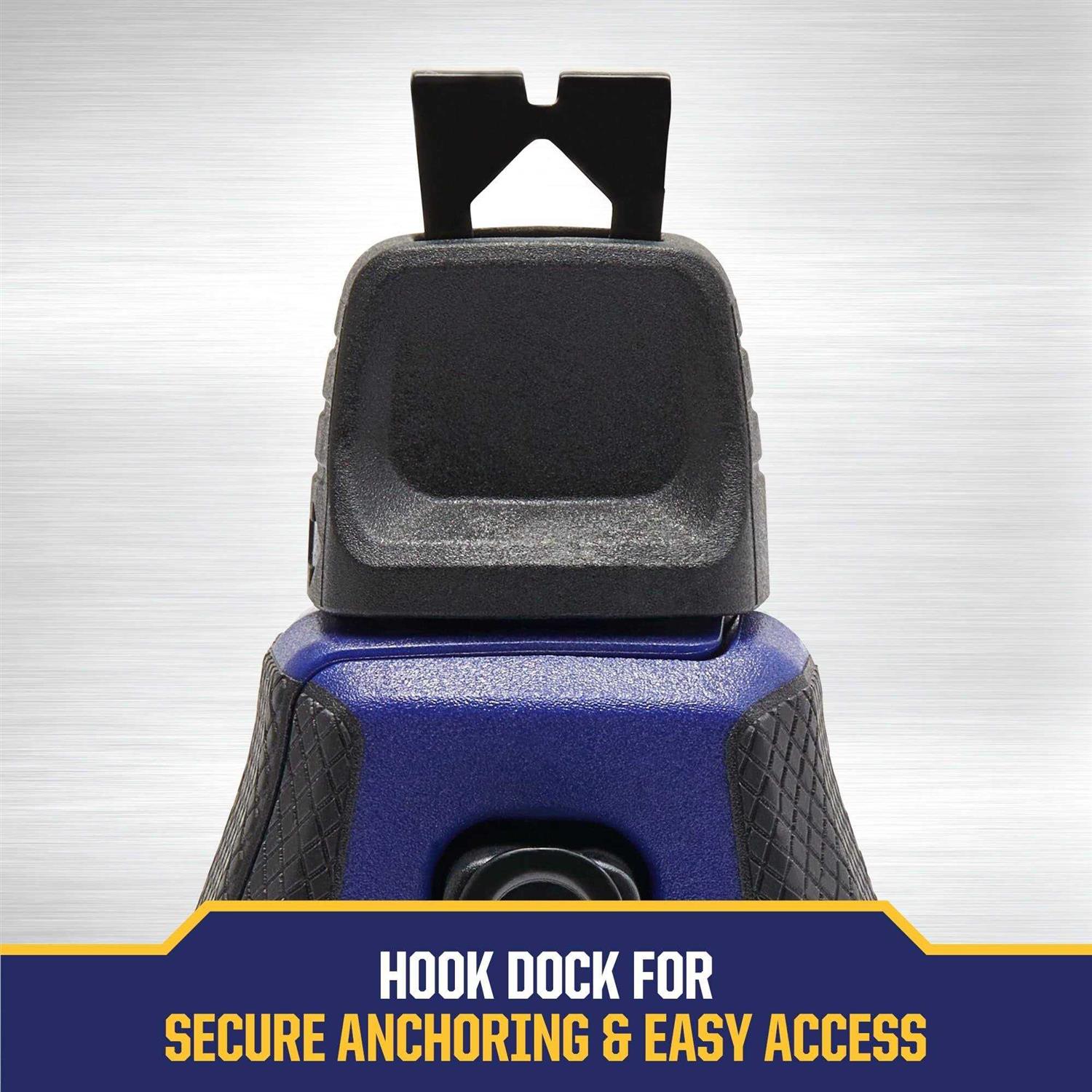 Irwin’s Mach 6 reel and chalk combo keeps you firmly attached to your work with its 100 foot, high tensile line designed for abrasive surfaces. Twice the strength of regular chalk reels, the aluminum housing and metal drive gear promise durability for years to come. The back panel allows for quick line changes while the locking top makes refilling chalk a breeze. The 6 to 1 gear ratio rewinds the line six times faster, helping you finish jobs efficiently. The combo comes with a 113 gram bottle of blue chalk to get you started.