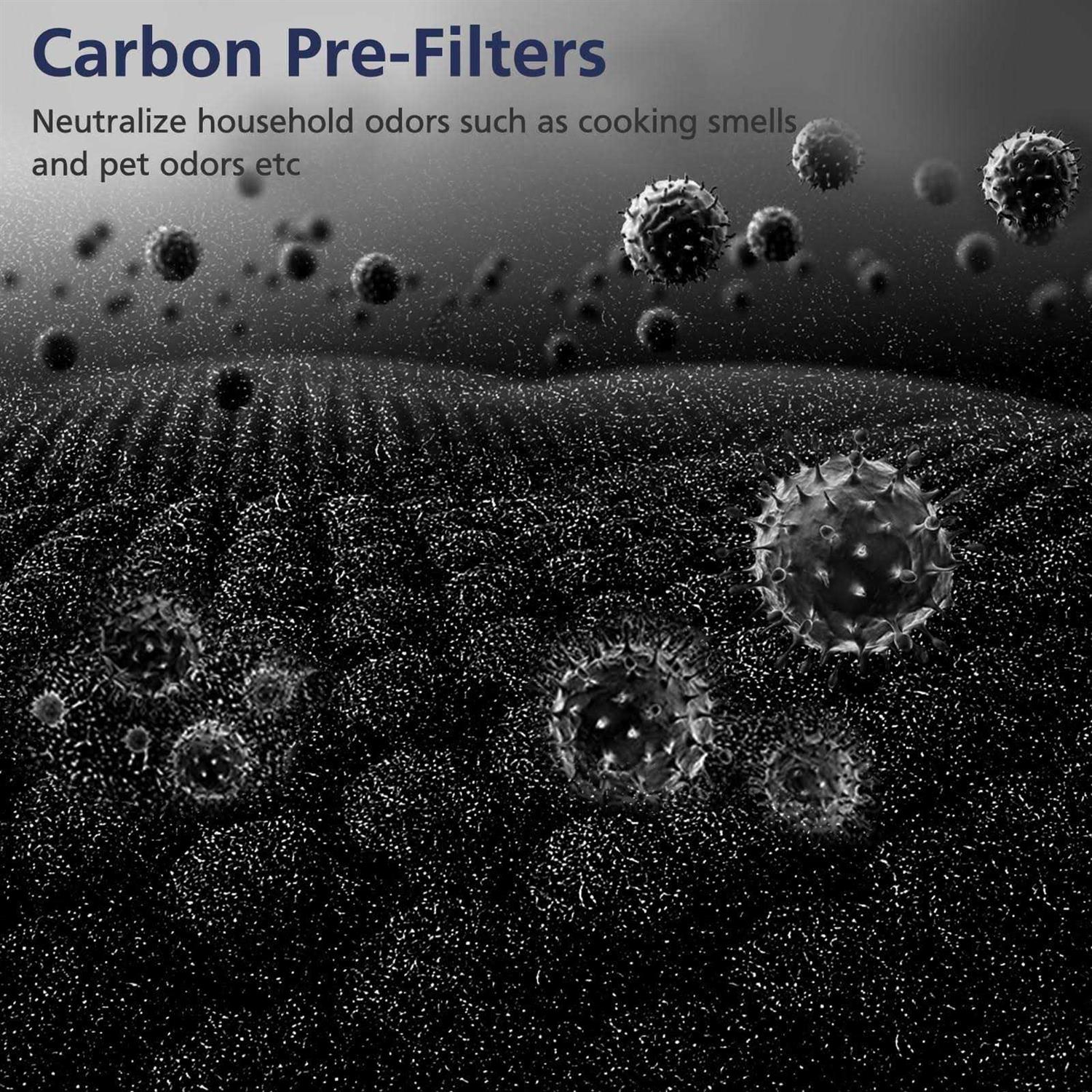 - ★ Package includes 2 true HEPA VEVA 8000 replacement filters and 8 precut activated carbon pre-filters.