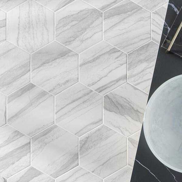 - “The Marble Hex Collection optimizes the natural beauty of marble for the modern space in a dynamic porcelain hexagon format”