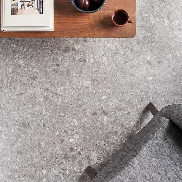 Ivy Hill Tile Rizzo Earth Gray 20 Mil x 12 in. x 24 in. Click Lock Terrazzo Look Waterproof Luxury Vinyl Flooring (20 Sq. ft./Case)