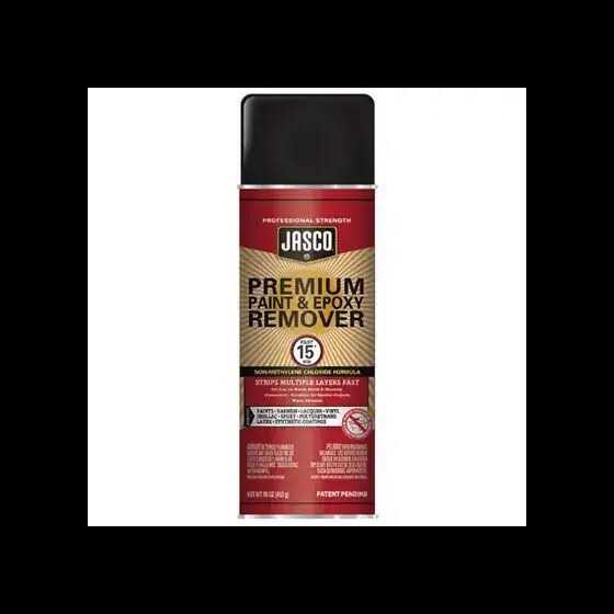 Jasco premium paint and epoxy remover aerosol is patent-pending, non-methylene chloride formula that effectively removes paint, varnish, lacquer, shellac, epoxy, urethane, latex or any synthetic coating in as little as 15 mins. Sprayable aerosol applies quickly. It can be used on wood, metal, concrete and masonry.