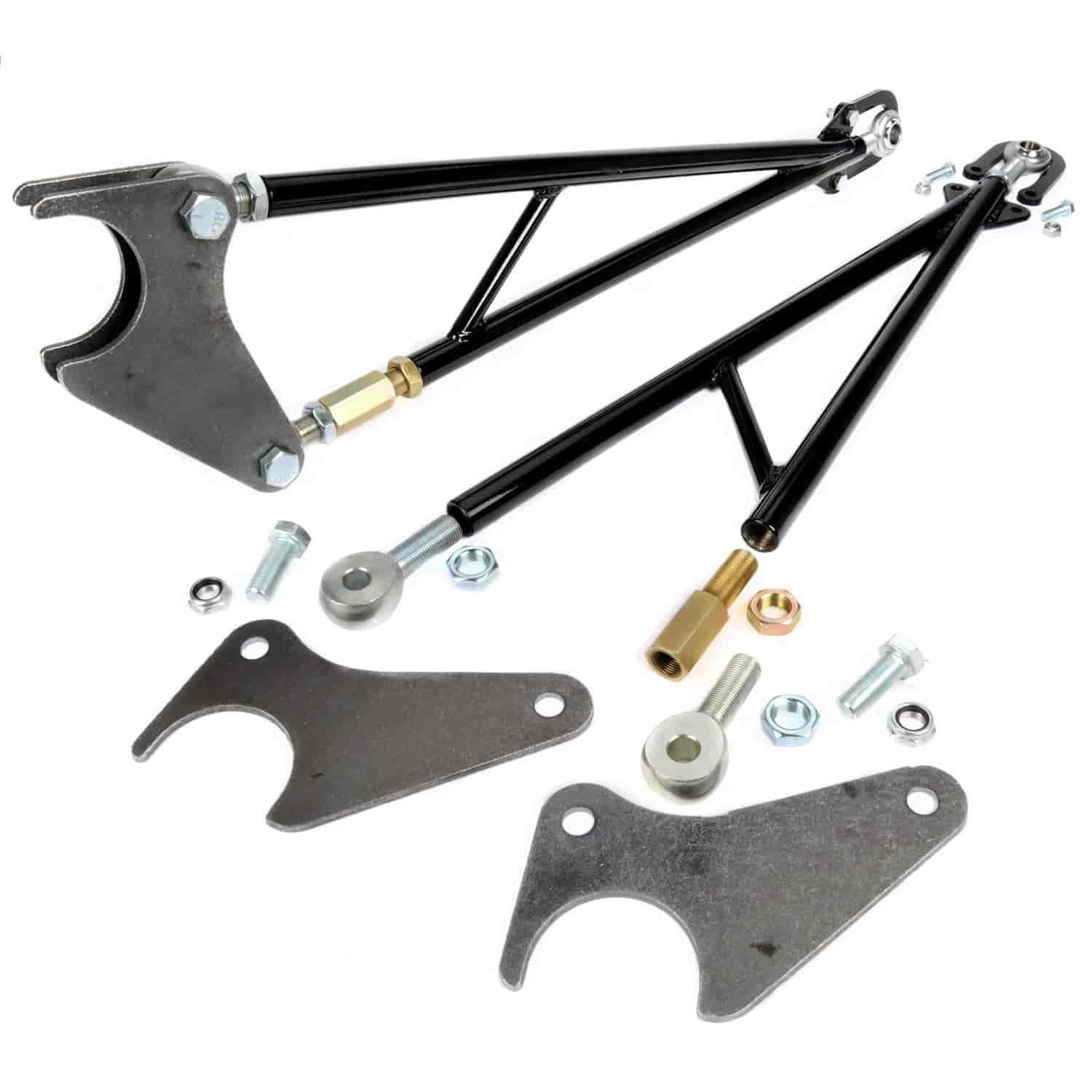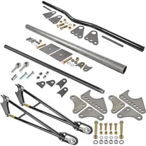 DOM tubingIncludes:(2) Safety Loop Kits(4) 3/16 in. Steel Housing Brackets(2) 3/4 in. Rod Ends(4) 5/8 in. Rod Ends JEGS 64672 Adjustable Ladder bars are designed to eliminate axle wrap up and provide excellent rear axle traction. They are made from DOM (Drawn over a Mandrel) tubing and mild steel brackets for strength and durability. These Ladder bars come with quality rod ends and hardware, are easy to install, effective, economical and can be tuned for maximum traction. Welding is required.