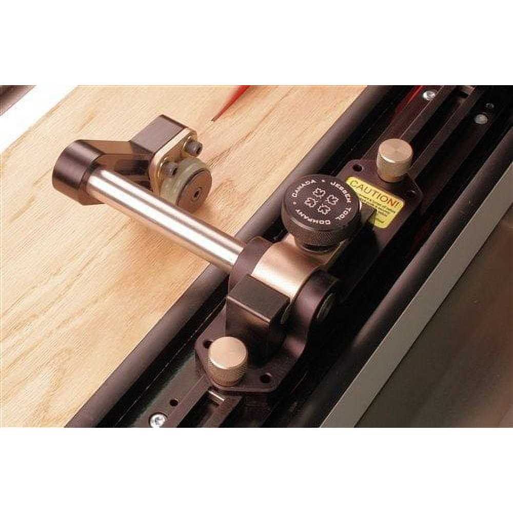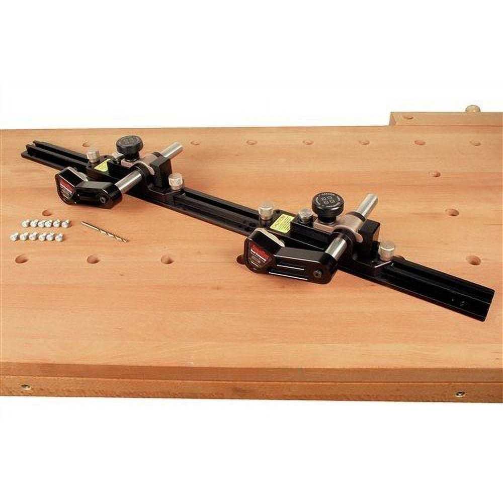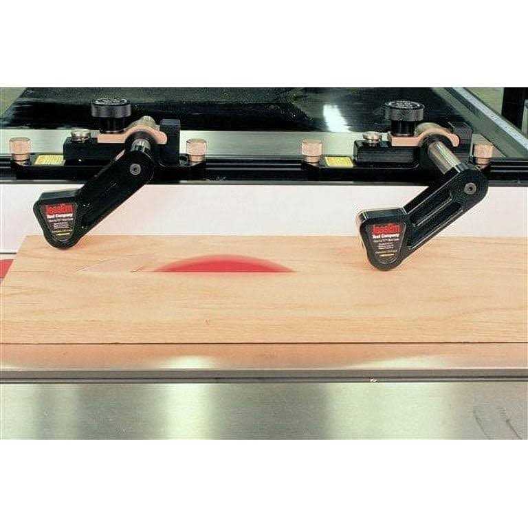 The Jess Em Clear-Cut TS Stock Guides for your table saw offer superior control on your workpiece by securely holding it in position to achieve safer, smoother, and more precise cuts. The unique guide rollers mounted on a 5-degree angle effectively steering your stock towards your fence. This angle causes the roller to hold with more force if the wood tries to move against the direction of the feed. Under spring pressure, the roller arms ensure your work is held firmly in place. Rollers are fitted with one way roller bearings to ensure each roller spins in the direction of the feed to prevent kickback. Fast and Easy Set Up The guides lock into position along the track with a twist of the anodized aluminum clamping knobs. Grip force urethane rollers hold your stock securely in position. When not in use they tuck away in behind the surface of your fence. Perfect for Boards or Large Panels The guides have 3-1/8 of total vertical travel and can accommodate a maximum stock thickness of 13/16 above the mounting surface when mounted to the T-track. The Clear-Cut TS Guides give you complete control of your stock even when routing wide boards or large panels. The dual action of the guides will pull your work tight to the fence. Material and Construction The guides are CNC-machined from 6000 series aluminum and anodized for appearance and durability. The roller axels are machined from cold rolled steel and case hardened for durability, while rollers are designed from wear-resistant acetal resin. Traction tires are molded out of urethane for long life and superior grip.