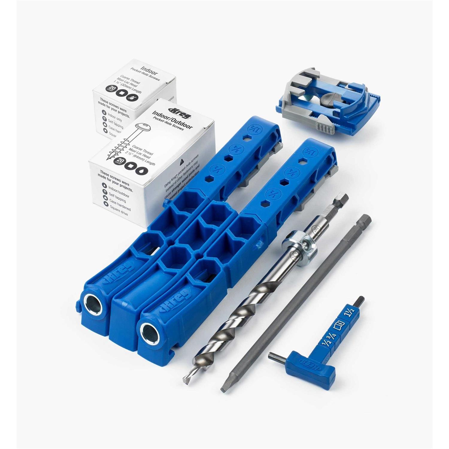 - Drill Guides and Spacer twist and lock to make it easy to set pocket-hole spacing.