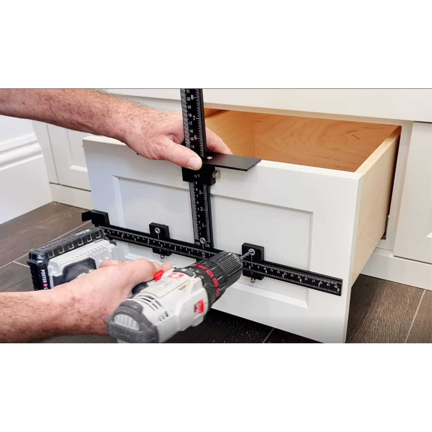 Say farewell to hand measuring and homemade templates with our jig, designed for a quick and straightforward installation of cabinet pulls and knobs. Ideal for professionals and DIY enthusiasts, this tool ensures fast and easy hardware installation. Crafted with durable aluminum and thicker materials, our jig prioritizes stability and accuracy. The Perfect Match laser-engraved rulers make it a top choice for precise cabinet hardware installation. Assembly and disassembly take less than a minute, allowing you to adjust the desired position, tighten the thumbscrews, secure in place, and drill. Thanks to its substantial weight, clamping onto doors is unnecessary – it stays firmly in place. The hardware jig is also reversible for opposite side doors, eliminating the need for extra adjustments. Invest wisely to protect your cabinet doors and your budget. Our full aluminum hardware jig offers a reliable solution without compromising quality. Trust in JNB Pro Professional Tools for lasting results at a competitive price – because your tough day deserves the reliable touch of quality tools.