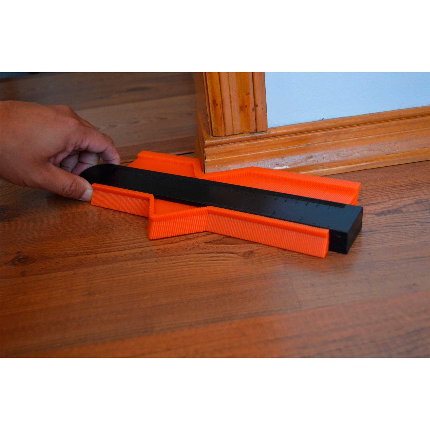Eliminate the guesswork by quickly replicating irregular shapes or profiles for an exact fit every time. Johnson’s precision contour gauge is equipped with long tines to accurately shape and trace, saving you time and making your job easier. Its built-in locking lever holds the contour securely in place to transfer anywhere you need. Capable of measuring up to 10-in this contour gauge is perfect for larger applications and fits around most common pipes and round columns. Featuring a permanently stamped ruler with inch and centimeter increments as a convenient reference guide. For floor installation, Johnson’s contour gauge is a must-have tool for carpet, linoleum, tile, laminate, solid wood, or other flooring material to replicate the exact shape needed to fit around curved surfaces such as pipes or molding.