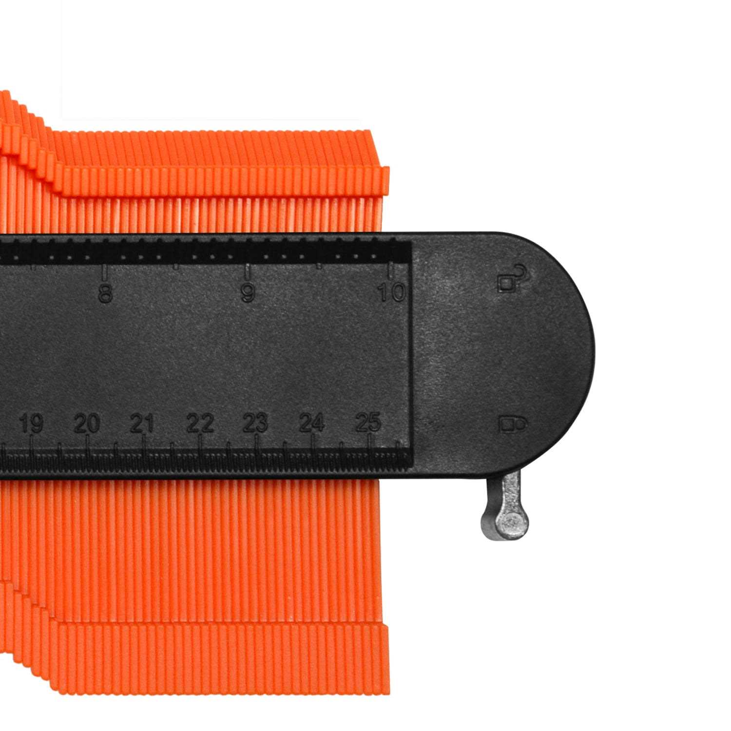 - Metal locking mechanism secures contour measurement in place