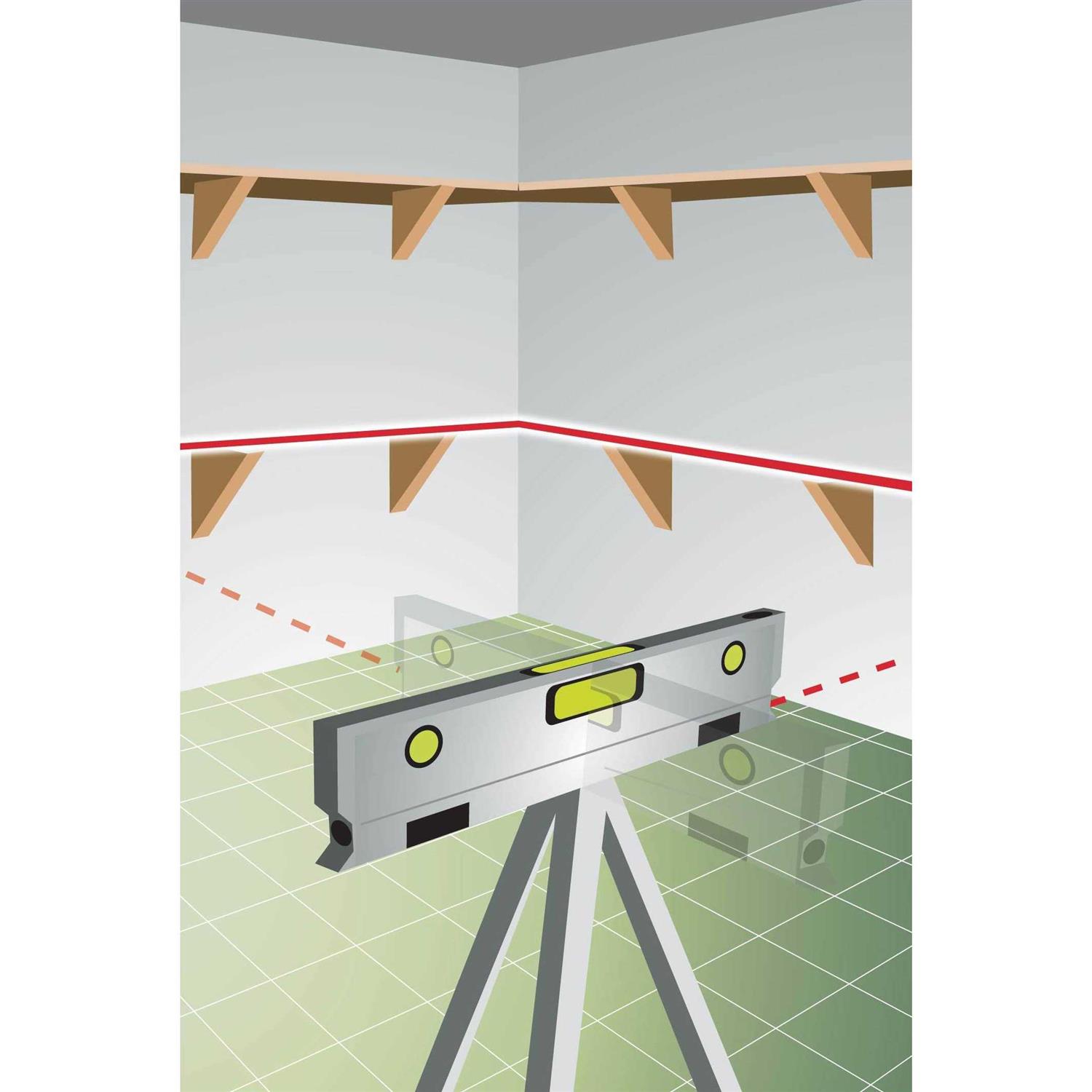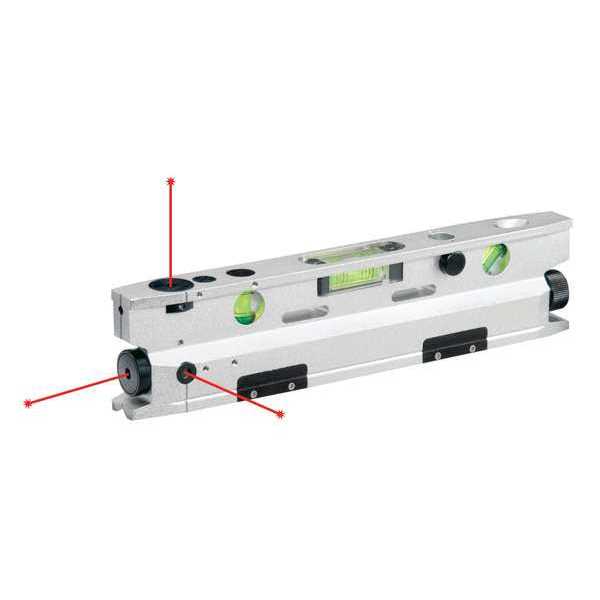 This magnetic torpedo laser level offers precision, versatility and durability with four vials that read plumb, level, 45° and cross check as well as three simultaneous 90° laser beams for level, plumb and square reference points. For versatility, the level comes equipped with a strong magnetic leveling base, tripod mount and V-groove frame that fits on pipe and conduit. And the precision crafted, anodized aluminum frame provides maximum accuracy and durability. The level also comes with a soft-sided carrying pouch to keep your tool clean and safe when not in use.