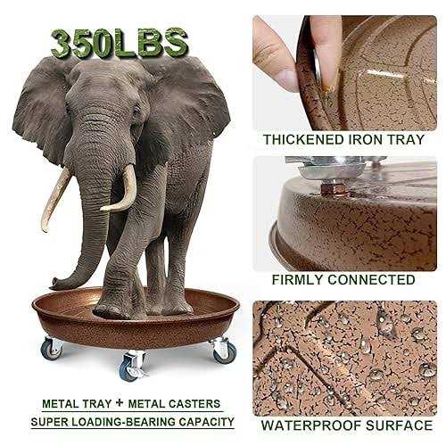 Heavy-Duty Metal Plant Caddy: The round metal heavy-duty tray is made of thickened carbon steel plate, which is not easily deformed. It is especially suitable for lifting and moving large potted plants or plants. The fence of the tray can protect the flower pot and store excess water. The surface is coated with eco-friendly and harmless thickened baking paint, making the plant caddy more durable. 5 x Iron Casters: The 14-inch tray is equipped with 5pcs iron 2″ casters, which have a higher load-bearing capacity than plastic casters. The outer ring of the wheels is made of soft rubber material, smooth and silent, and does not damage the floor. The 360-degree rotating wheels make it easy to move heavy potted plants. Two of the casters are equipped with locks, making it convenient for you to fix the flower pot. Size and Load-Bearing: The outer diameter of the caddy is 14.2 inches, the inner diameter is 13.4 inches, and the height is 4.8 inches, the depth of tray is 1.8 inches, suitable for flower pots with a bottom diameter of less than 13 inches. The maximum weight it can bear is 350 lbs. Multi-functional Mobile Plant Dolly: The round tray is suitable for flower pots of various shapes. The heavy-duty plant dolly can be widely used for indoor and outdoor moving of garden pots, heavy plants, large potted trees, large vases, whiskey barrels, freestanding stoves, propane tanks, Christmas trees, or heavy trash cans, and it can protect your floors or ground from wear and tear. Easy to Install: Simply screw the casters into the bottom nuts by hand and tighten them with the included metal wrench to complete the installation, which takes less than 2 minutes. JzNova Plant Caddy Rolling Stand with Wheels, Movable Flower Planter Potted Round Pallet, Indoor Outdoor Planter Saucer Tray Dolly
