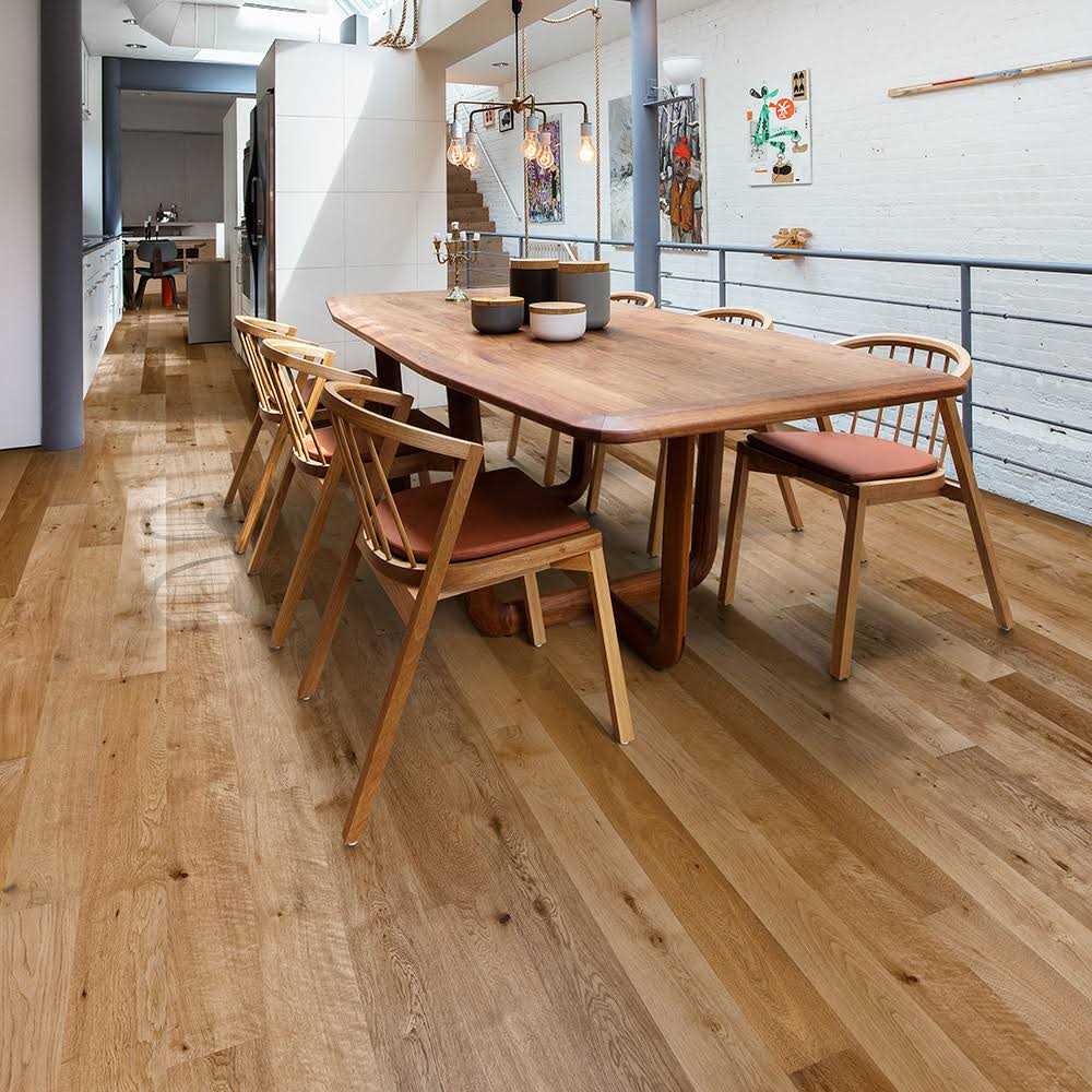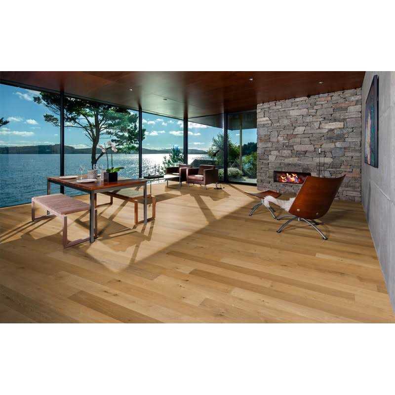 Kahrs Avanti Canvas series is a one-strip hardwood oak floor that comes in upscale colors with slightly grey overtones finished in a very matte sheen. The easy, DIY, Woodloc 5s interlocking system makes installation a snap, saving you time and money. Avanti Canvas is constructed using the Kahrs patented parquet multi-layer technology, with three separate layers and a total thickness of approximately 1/2” (12mm). The surface layer is approximately 1/8” (3.5mm) thick, which can be sanded two times, allowing several generations to enjoy this beautiful floor. The Kahrs Avanti Collection is made to the highest standards of health, which exceed both California CARB2 and European standards for toxic emissions in both adhesives and finishes. The formaldehyde emissions test shows .008ppm. All Kahrs hardwood products use materials from sustainable sources certified either by FSC (Forest Stewardship Council) or EMAS (European Eco-Management Audit Scheme) in Europe. They are all US Lacey Act compliant, and their raw materials are sourced within 200km of the Kahrs factory. See Kahrs in Action – Design Stories Magazine