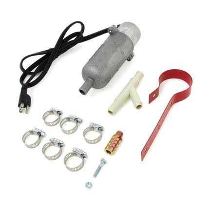 Uses versatile strap type mounting Thermostatically controlled from 135 to 175 degrees Requires moderate mechanical ability to install Die cast aluminum design for corrosion and impact resistance 1500 Watt An external tank heater is an electric heater that heats the engine or transmission of a vehicle to give quicker starts and protect your engine from damage that can occur during cold weather starts. Warmed engines also deliver better fuel economy, plus improves oil flow to provide better lubrication to the engine, which reduces wear and increases engine life. The one-piece molding eliminates the possibility of leaks and the tapered outlet design pushes coolant more effectively than other styles. The die cast aluminum is recyclable.