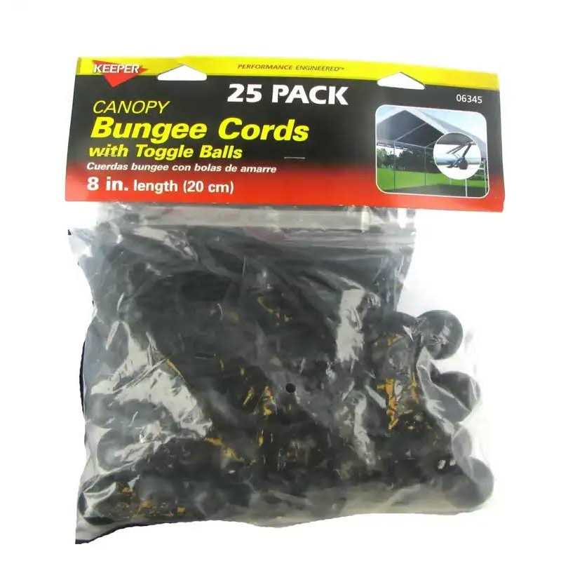 Keeper Bungee Cord with Toggle Balls, Black, 8″ – 25 count