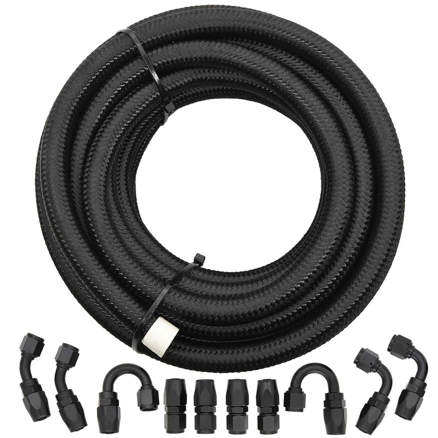 Kelen 6AN Fuel Line Kit, 6AN Fuel Hose Kit, 6AN 20ft Fuel Line Hose Kit, 6AN-20Ft-3/8-Oil/Gas/Fuel Hose End Fitting Kit with 10 Pcs Black Swivel