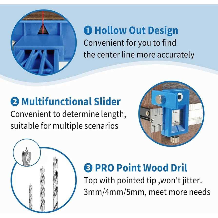 Brand: King&CharlesFeatures: 【Professional Point Wood Dril & Partner 】- Cabinet hardware jig set comes with 3 different sizes of Point Wood Dril, 3mm/4mm/5mm respectively, meeting different installation requirements. Pro-woodworking tools are more durable, Top with pointed tip ,won’t jitter. Indispensable accessory to install knob/handle/pull. 【Metric + Imperial Scale】- Contains metric imperial sizes. Super high-definition tick board marks made of ABS, and the ruler is made from stainless steel. Ensure the jig’s premium durability, high corrosion resistance, high strength. 【Detachable & Portable】- Cabinet hardware installation template quick-release ” drill guide” sliders can be split into small parts by taking a small Space to easily carry. 【Time Saver Quick Drilling】- Cabinet hardware template tool a full day of measuring and re-measuring. Set it up once and use it repeatedly with no further measurements, A good accessory, and helper for woodwork or DIY. The installation efficiency is greatly improved. 【Jig Widely Application】- Cabinet hardware jig is ideal for installing pulls or handles and knobs on DRAWERS, CABINETS, DOOR and so on. Works on any cabinet door stile and rails including shaker doors & recessed drawer fronts. Part Number: ZN19-1EAN: 0709226435510Package Dimensions: 16.9 x 2.7 x 2.5 inches