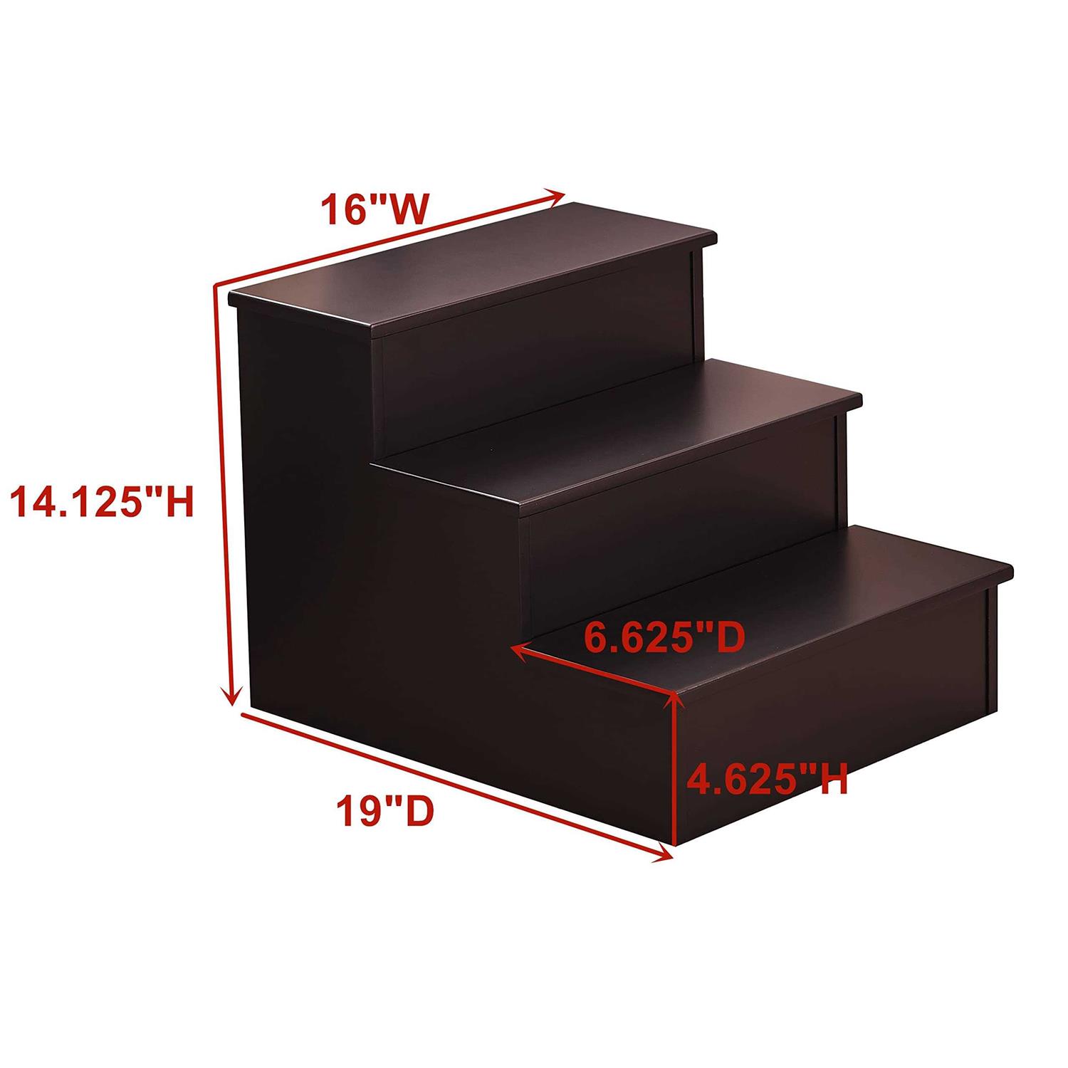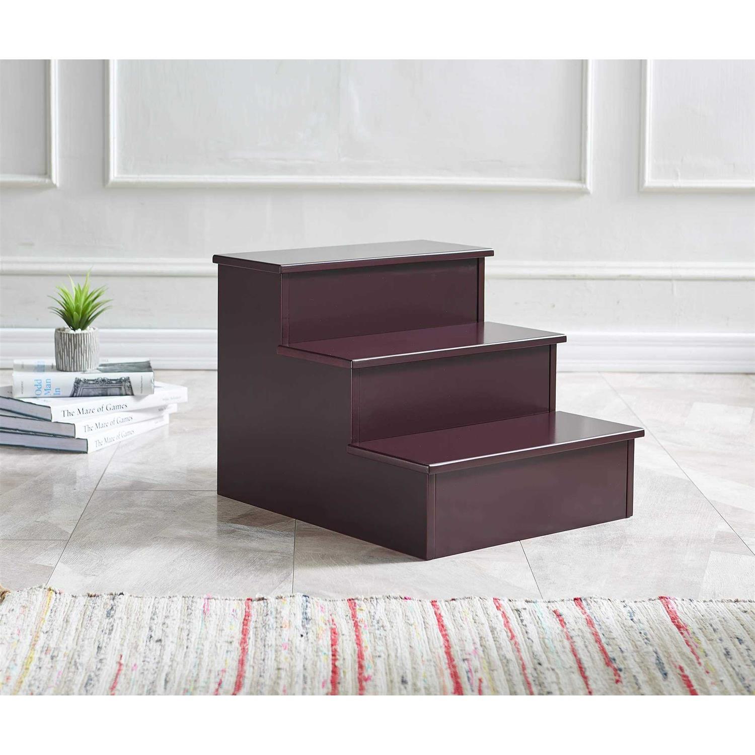 Kings Brand Furniture – Darien 3 Step Wood Step Stool for Adults or Kids, Dog Stairs, Cherry
