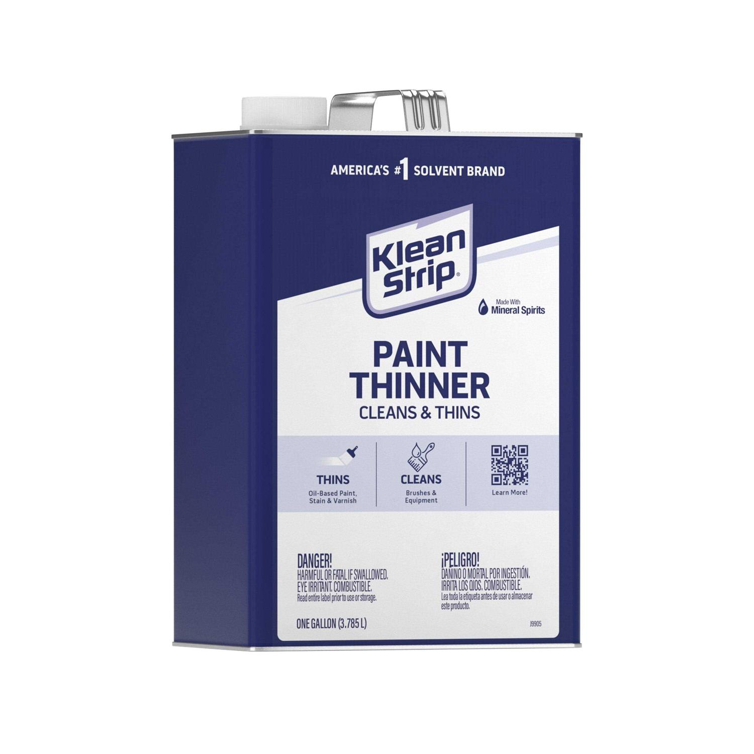 For Pro’s and DIY’ers, Klean-Strip is the leading brand of solvents, thinners, removers, and cleaners that are dependable for reliable results. Klean-Strip Paint Thinner effectively thins oil-based paint, stain and varnish. It can also be used to clean brushes and equipment immediately after use. Carefully read all directions, notes and cautions prior to use. Do not apply to floors or any other large surface areas. Keep out of reach of children.