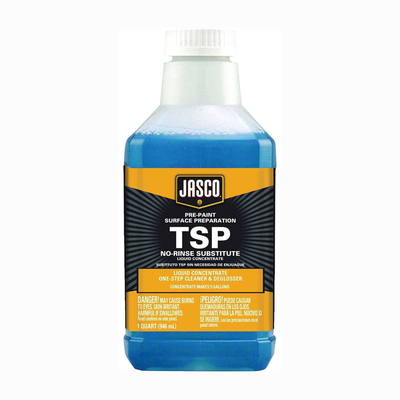 Cleans and deglosses in one easy step before painting. Wipe on, wipe off. No rinsing. Concentrate; add water 4 to 1. Removes grease, grit, grime, smoke, crayon and wax. No odor, non-flammable, non-corrosive, contains no phosphates and is biodegradable. One quart makes up to 5 quarts (average kitchen). Will not harm glass, ceramic tile, aluminum or chrome. Use to clean asphalt driveways before sealing.