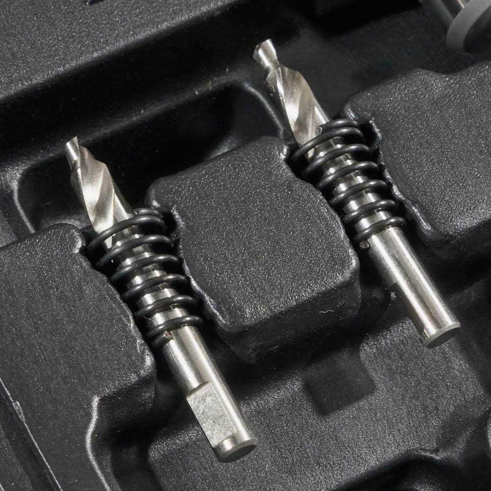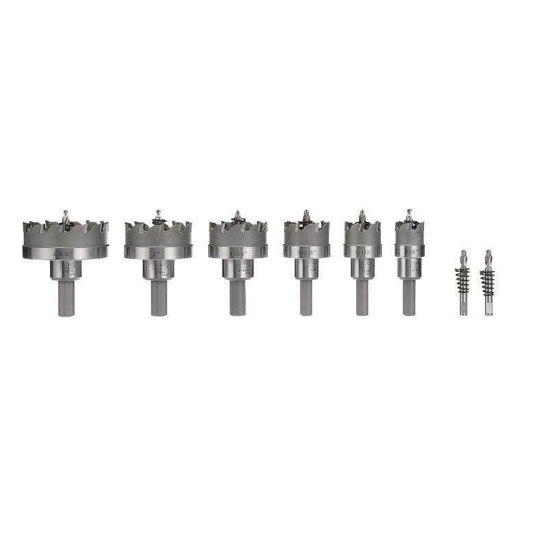 Cuts quick, precise holes in stainless steel, mild steel, iron, copper and brass sheet up to 3/16-Inch (5 mm) thick Set contains: 7/8-Inch, 1-1/8-Inch, 1-3/8-Inch, 1-3/4-Inch, 2-Inch, 2-1/2-Inch, two extra pilot bits Split point pilot drill bit prevents bit walking Integrated flange prevents the operator from drilling beyond the sheet metal Conduit and pipe sizes: 1/2-Inch (13 mm) to 2-Inch (51 mm) This hole cutter kit cuts quick, precise holes in a variety of materials. Includes six commonly used size plus two extra pilot bits. Integrated flange prevents the operator from drilling beyond the sheet metal. Split point pilot drill bit prevents bit walking.