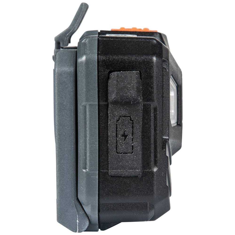 Klein Tools’ durable rechargeable headlamp has a bright 400 lumens all-on mode for 4-hours. Or 22-hours on the lower wide-casting flood light setting. You’ll know when it’s time to recharge the lamp because the LED lights on the battery gauge clearly indicate how much battery you have left. This headlamp also features new auto-sensing technology that turns off the unit after three minutes in bright light saving battery and a little embarrassment. The silicone thread woven into the adjustable fabric strap keeps the strap in place without pulling uncomfortably when worn without a hat. Mount the headlamp to the fabric strap or directly to a Klein Hard Hat.