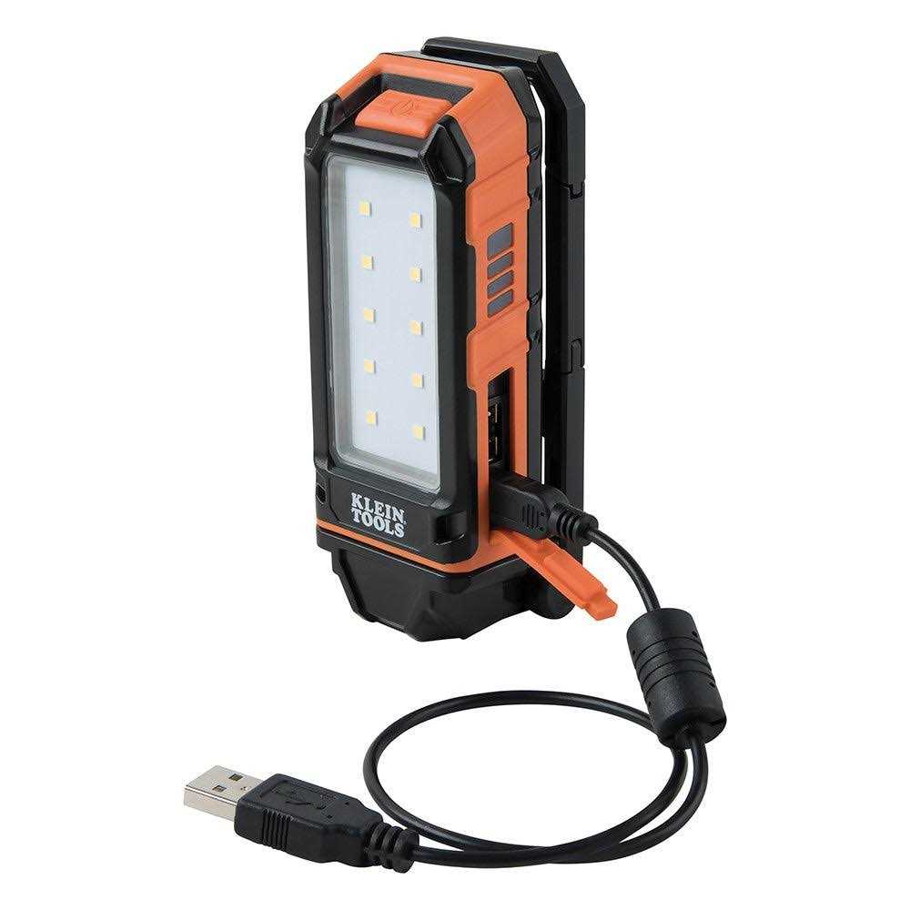 Klein Tools’ Rechargeable Personal Worklight goes wherever you go. Not only does this hard-working light rotate completely while it stands hangs hooks mounts and clips it charges your phone too. You can easily check the battery life with the gauge but dont worry on high this work light is a bright 460 lumens for a full 9 hours and 16 hours on the low setting. Easily charge the light with the included micro-USB.