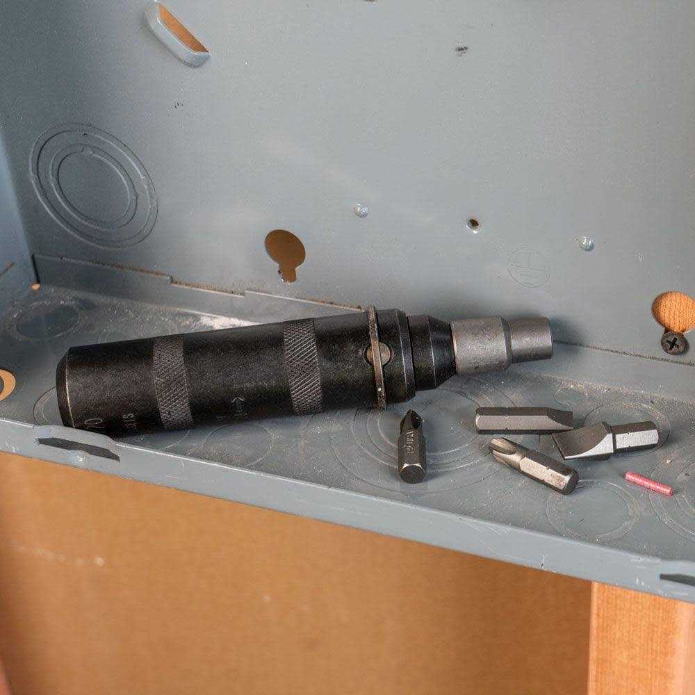 Klein Tools’ Reversible Impact-Driver Set is a rugged, hand-impact driver designed to turn rusted, frozen, or other stubborn screws. The internal, spring-loaded, helical design transforms the impact of a hammer blow up to 200 ft.-lbs. of shock torque. It can also be used with 3/8-Inch square-drive impact sockets.WARNING Always wear approved eye protection. Never use on or near live electrical circuits. Do NOT use to pry or chisel. Do NOT use to pry or chisel.