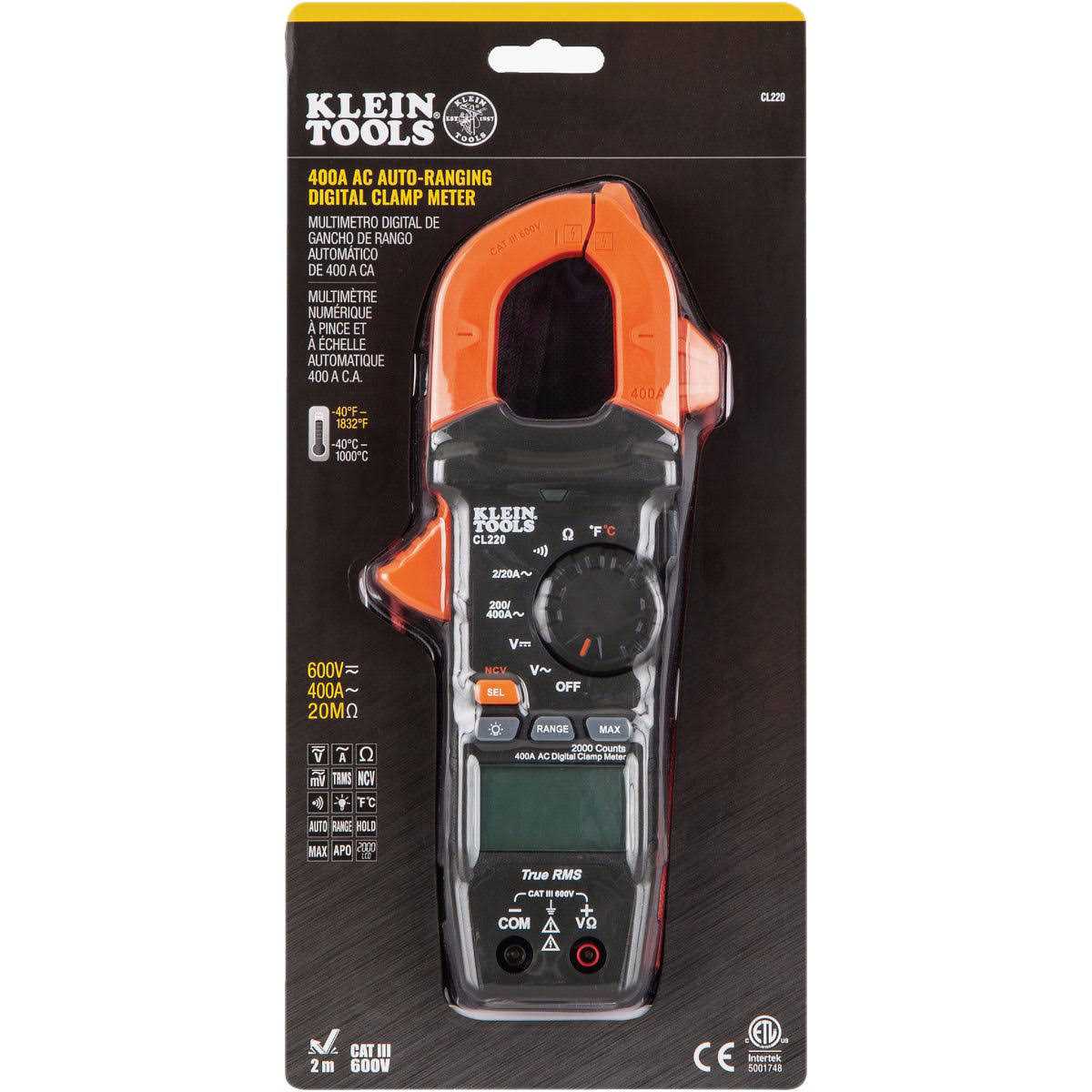 Klein Tools CL220 400 AC Auto Ranging Digital Clamp Meter