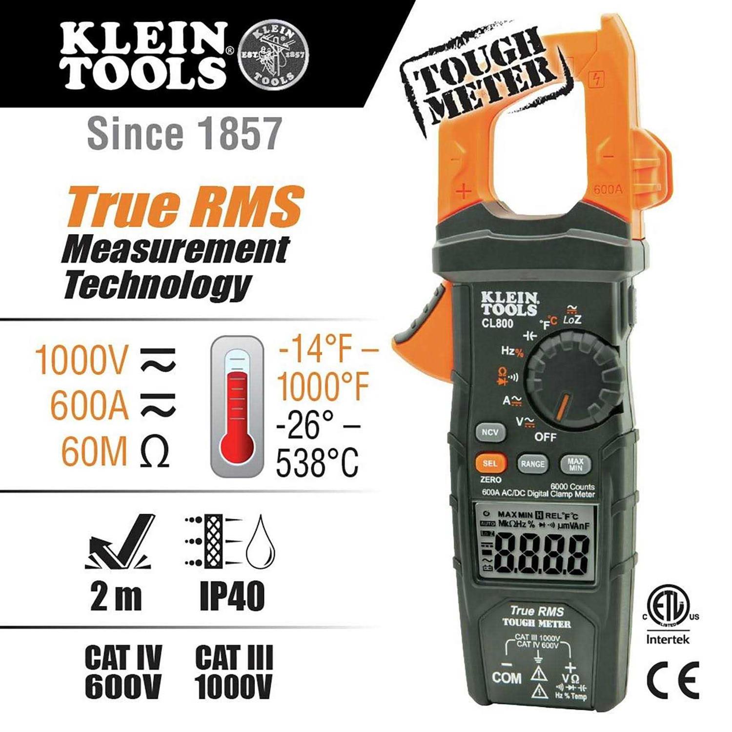 Klein Tools CL800 Digital Clamp Meter AC/DC Auto-Ranging