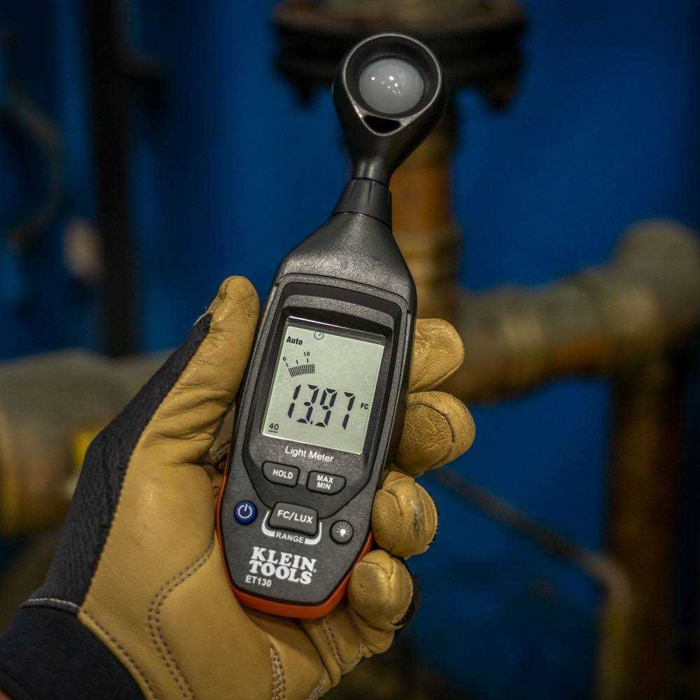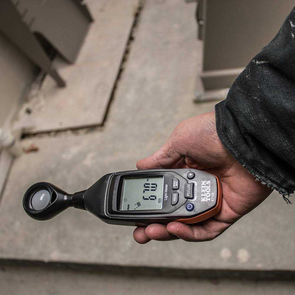 Klein Tools ET130 is an easy-to-use precision light meter that measures illuminance levels in both Foot Candles (FC) and Lux. Backlit LCD display screen with bar graph assists when monitoring light levels and for retrofit projects. Includes custom carrying pouch and 9V battery. Klein Tools ET130 is an easy-to-use precision light meter that measures illuminance levels in both Foot Candles (FC) and Lux. Backlit LCD display screen with bar graph assists when monitoring light levels and for retrofit projects. Includes custom carrying pouch and 9V battery.