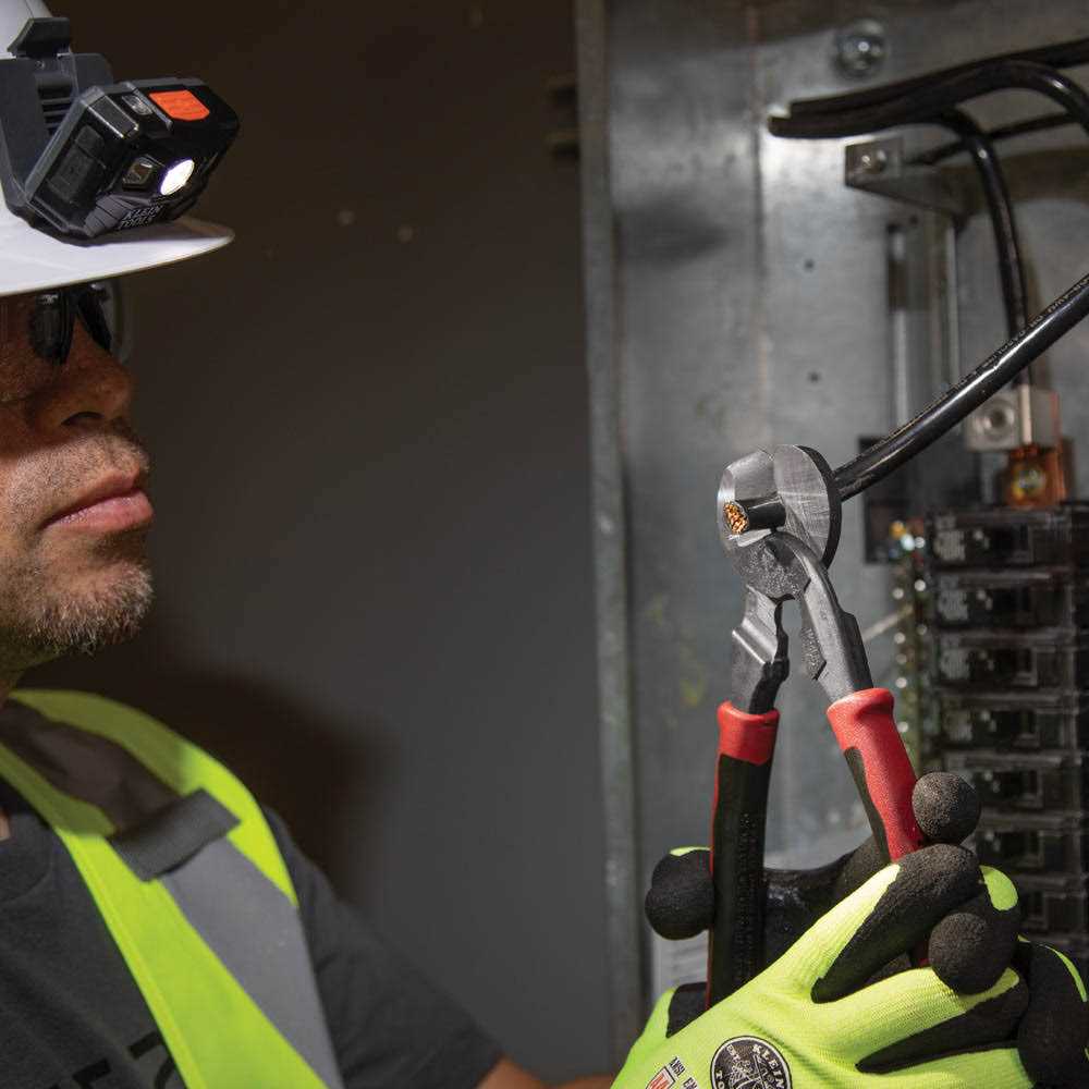 - SHEAR-TYPE JAWS: Cable-gripping, beveled jaws pull the cable to the center for an easier cut
