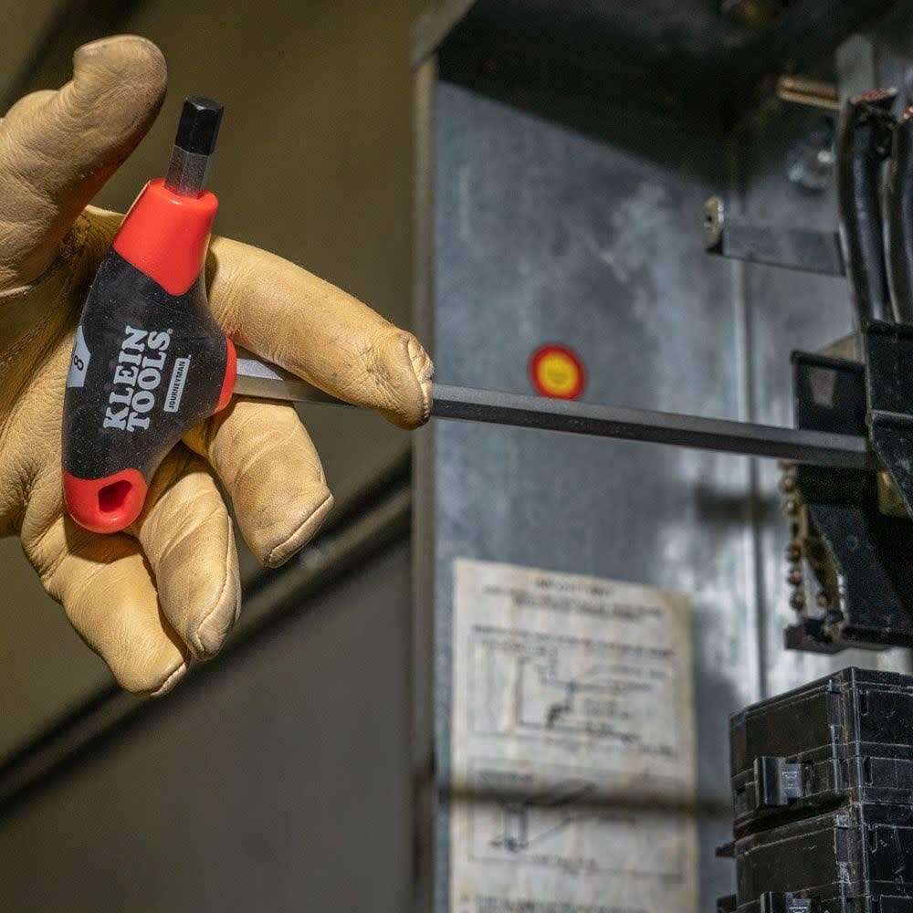 Klein hex-keys are the tools professionals cannot afford to be without. The Journeyman Hex T-Handle from Klein Tools delivers more torque to the fasteners than standard hex keys. Heat-treated and tempered for superior strength and durability. Klein hex-keys are designed for a precise fit in sockets, preventing slippage and stripping of the socket.