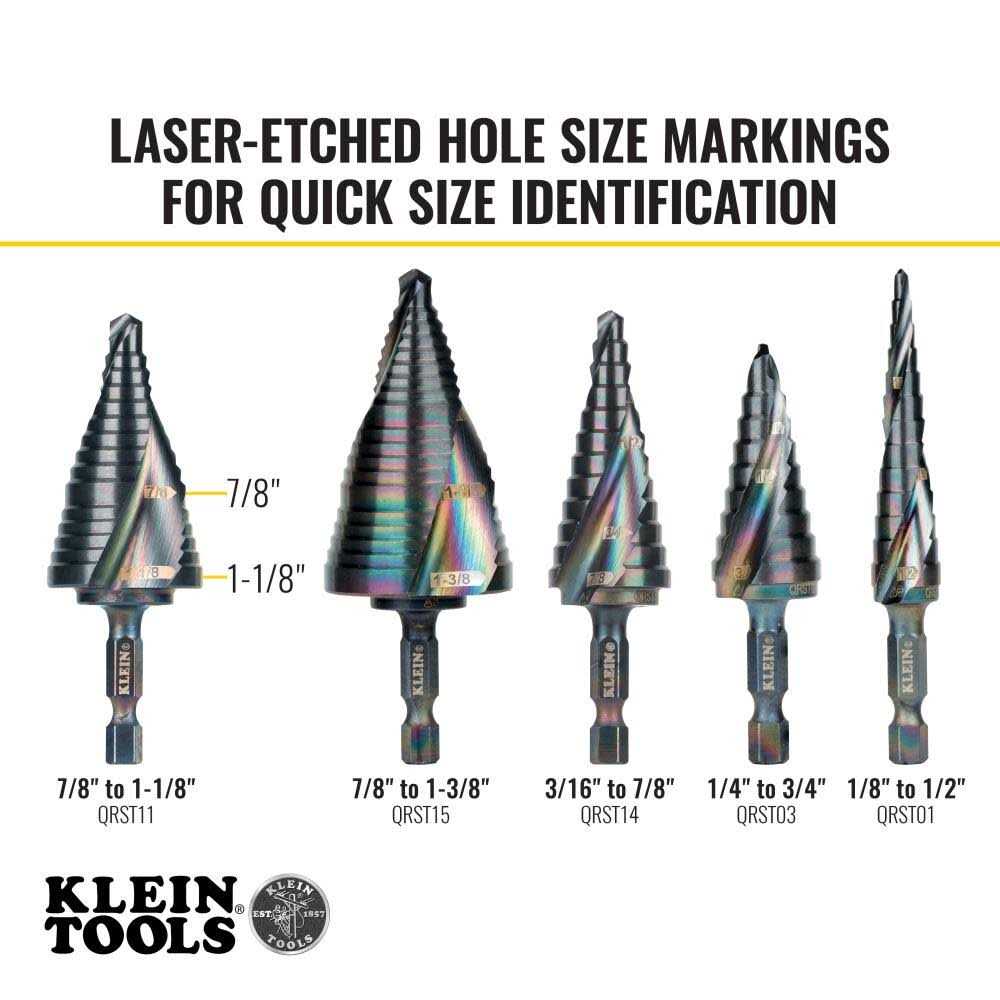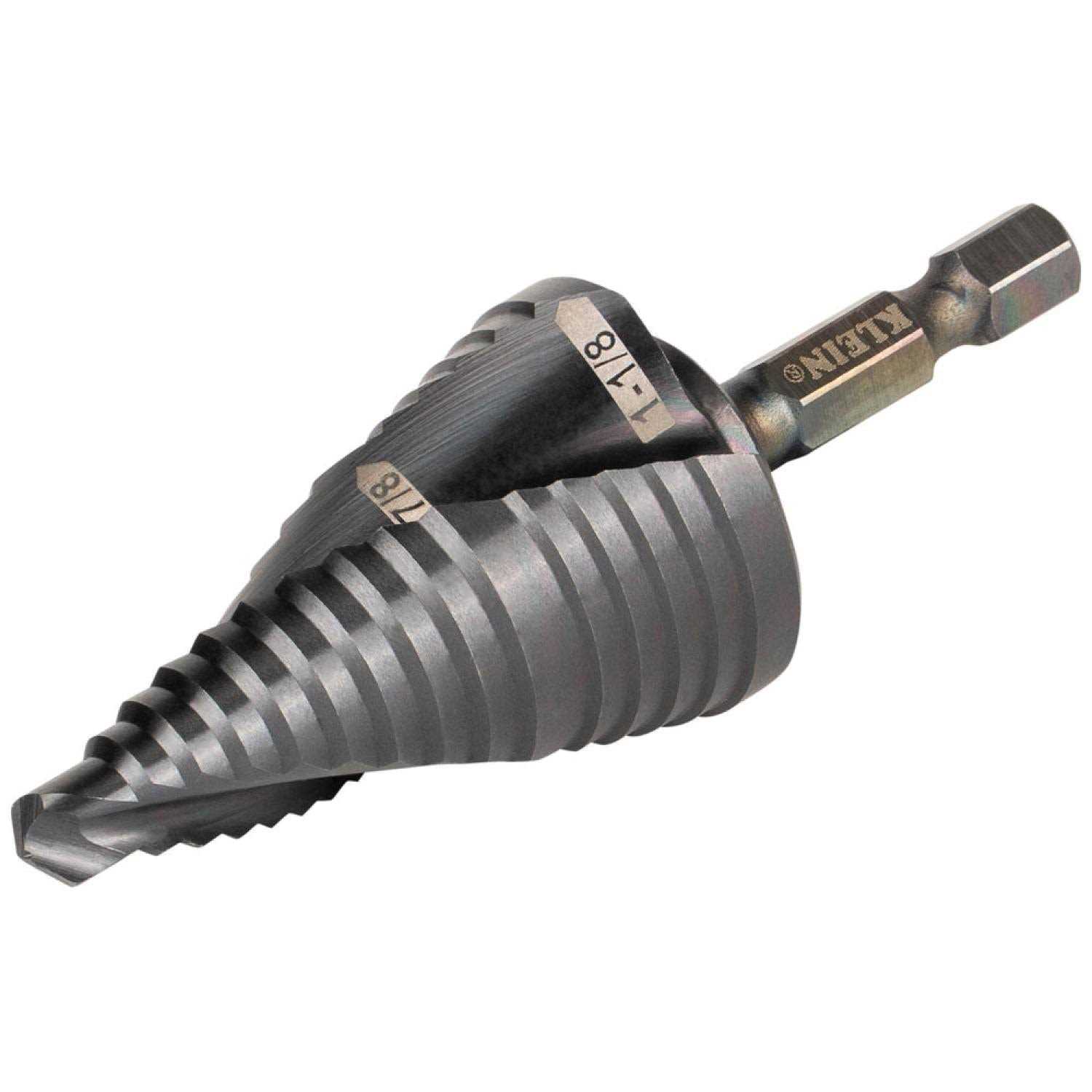 Klein Tools QRST11 Step Drill Bit, Quick Release, Spiral Flute, 7/8 to 1-1/8″