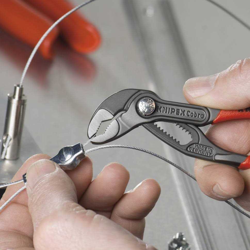 No more time-consuming test-adjusting to achieve the correct size. And you’ll also be able to say goodbye to blood blisters you get with other gripping pliers. With safety its priority, KNIPEX Tools has designed a built-in pinch guard that prevents blood blisters on your hand. The unique self-locking adjustment and induction hardened gripping teeth means that once it’s set, it stays. There’s no slipping and no need to waste strength squeezing the pliers ensuring operator safety and more efficient work. Cobra’s unique jaw configuration can grip any shape object flat, round, hex, or square. It also eliminates nut burring to avoid stripping pipes, nuts, or bolts. Additionally, the Cobra’s newly redesigned adjustment provides 30% more gripping capacity than previous models. A simple push of the patented push button adjustment maintains jaw size setting and gives you the correct size opening every time. And it’s easily done with just one hand for trouble-free operation in confined spaces. Cobra water pump pliers are constructed from chrome vanadium electric steel, an innovative high alloy, oil tempered steel that ensures longevity. And their thin head design helps you get into spaces other pliers can’t, so there’s no need to change tools when working in tight confines.
