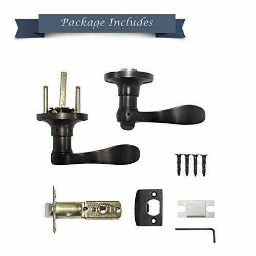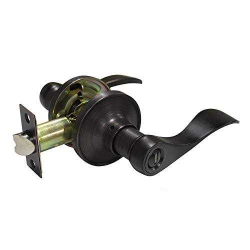 EASY INSTALLATION: Install your lockset in a flash. All you need is a door and a tool set! No need for professional door fitters, you can do it yourself!. PRIVACY FUNCTION: The door lever can be locked inside and opened outside in emergency WITHOUT keys. Use it for your guest rooms, bedrooms, bathrooms, interior locking doors and other privacy needs; Material: Zinc Alloy; Finished Color: Oil Rubbed Bronze.. ONE SIZE FITS MOST: This oil rubbed bronze door lever fits 1-3/8″ to 1-3/4″ doors; Reversible for both left handed and right handed doors. (Notice: The latch plate is unremovable.). QUALITY IS BUILT IN: The solid zinc alloy and brass, smooth finish, polished appearance and substantial, easy-to-grasp lever will subtly elevate and enhance commercial areas or residences alike.. WAVE DESIGN: Its not just a door lever its a statement piece.