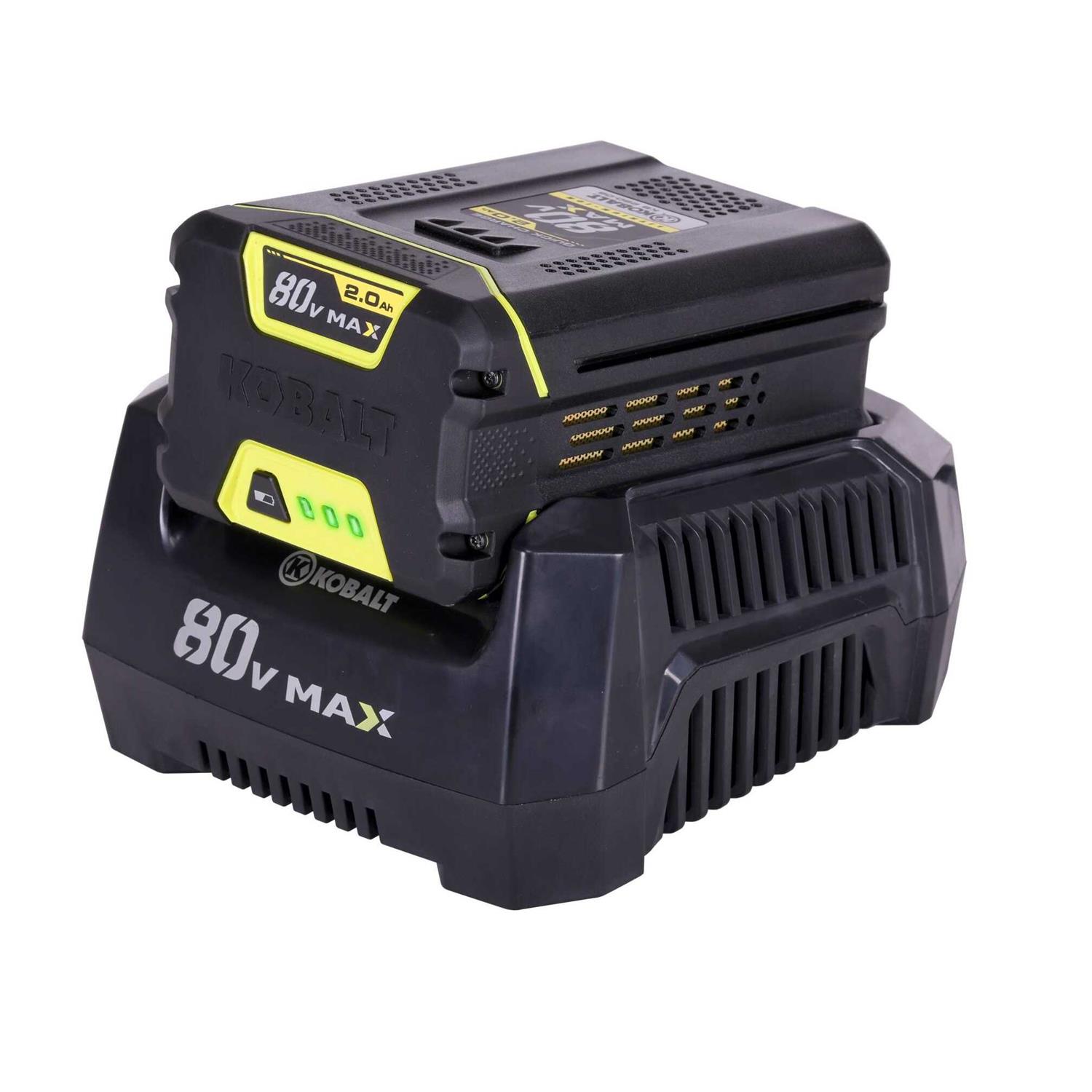 - High performance Kobalt 80 Volt lithium-ion battery delivers fade-free power with no memory loss after charging