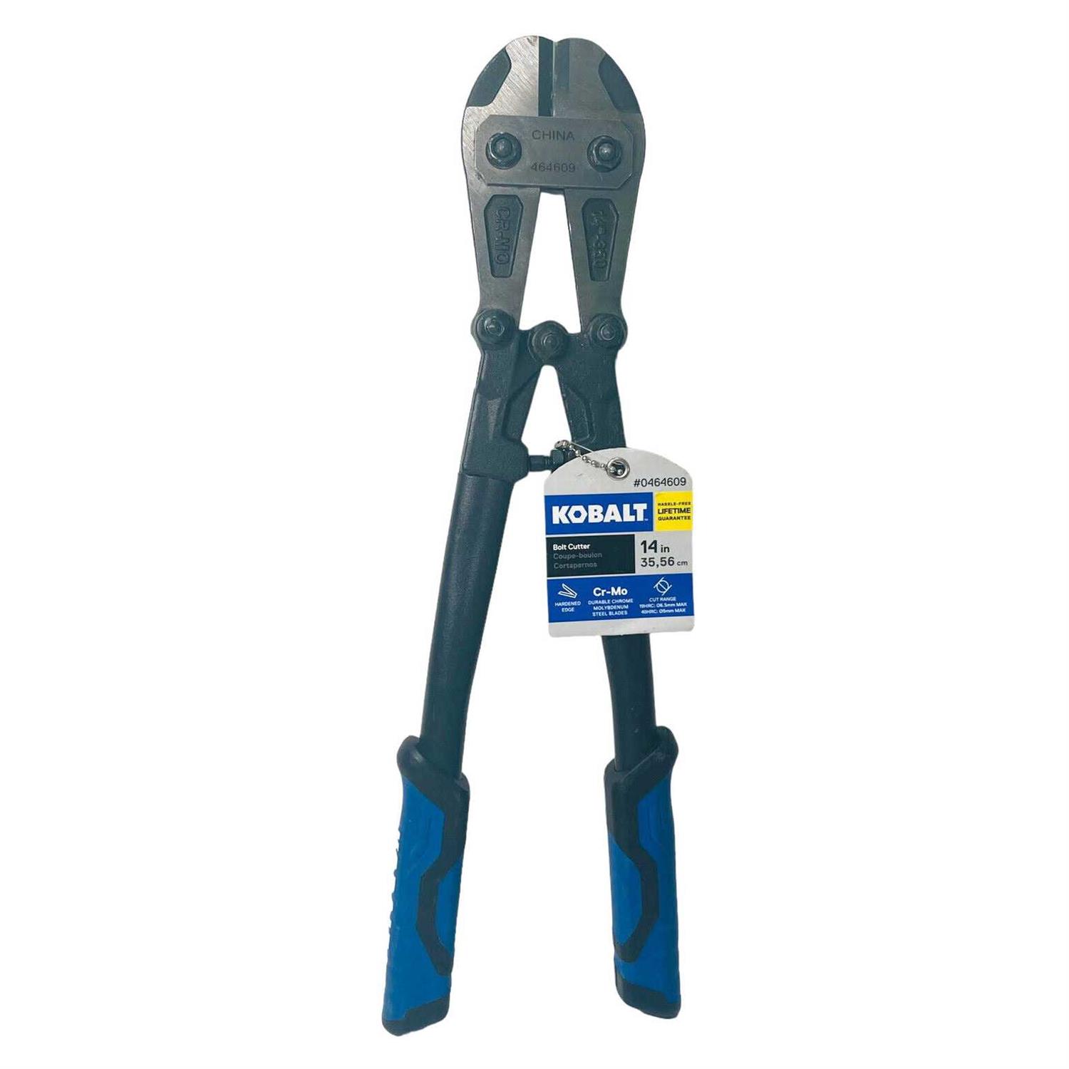 For the professional or the do-it-yourself handyperson, these Kobalt bolt cutter gets the job done. Cut rods, bolts, concrete form ties and fencing wire quickly and easily with the heat-treated chrome molybdenum steel jaws of these durable cutting pliers. The ergonomic handle design features bi-material anti-slip grips for added comfort and control while you work. Convenient adjusting screws make it easy to align the jaws of this 14-inch bolt cutter for optimal performance.