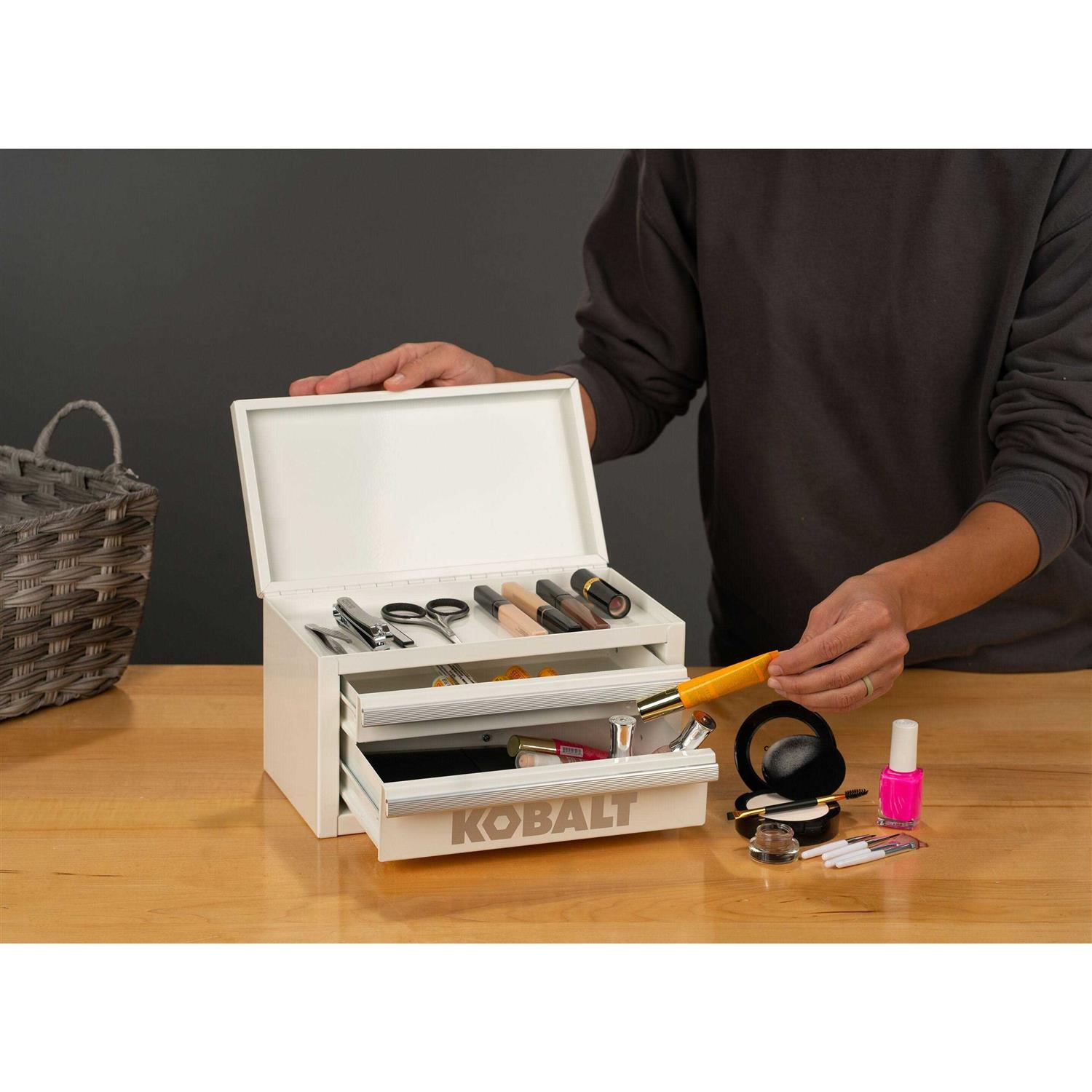 Introducing the KOBALT portable storage system constructed with impact-resistant polymers to handle any environment. The KOBALT mini tool box holds up to 5 lbs per drawer to keep all your equipment organized. The tool box is compatible with the full line of Kobalt modular storage boxes and accessories.