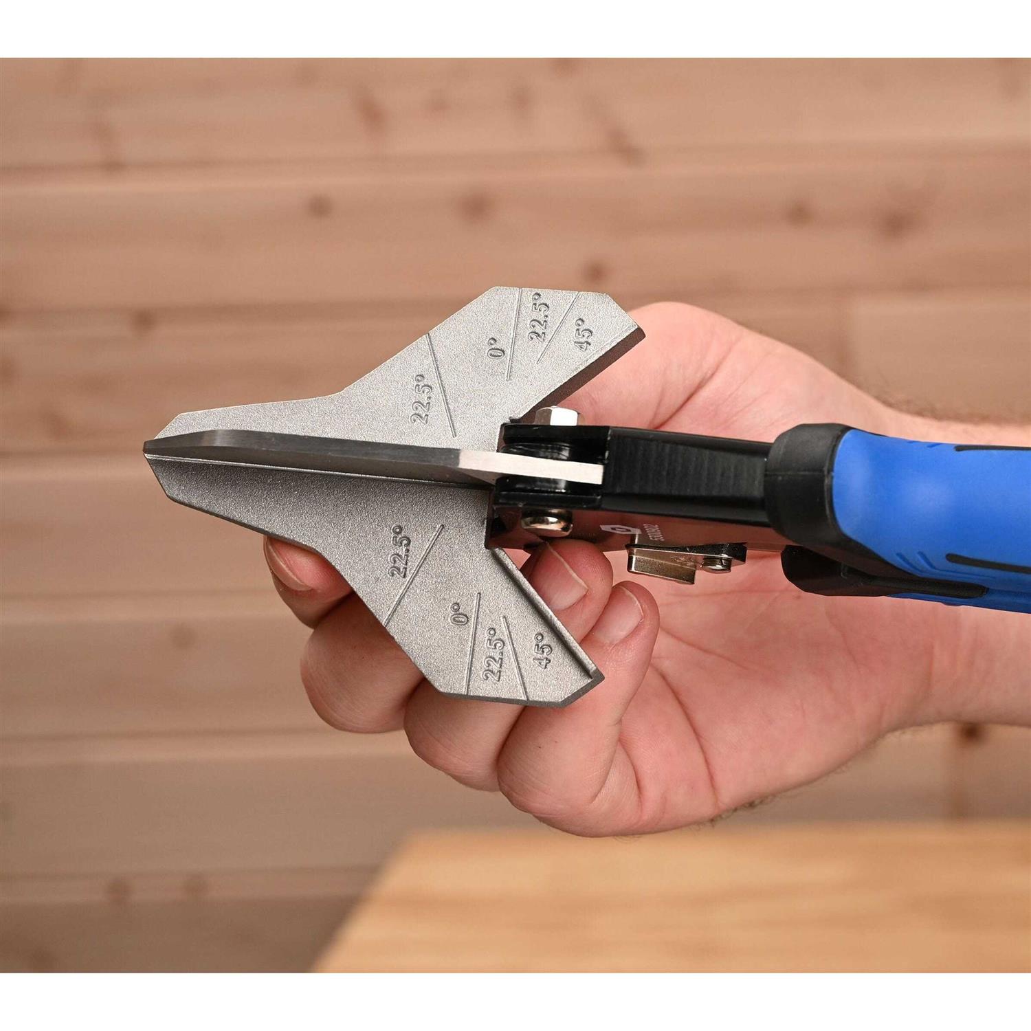 Miter snips help you make accurate miter cuts fast in any type of small molding, including pine, PVC, and MDF. Built-in angle markings and a 45 degree stop provide quick accurate references. Durable steel construction and a resharpenable blade make it the fastest, easiest way to make clean and precise miter cuts in shoe, quarter-round, and other types of molding.