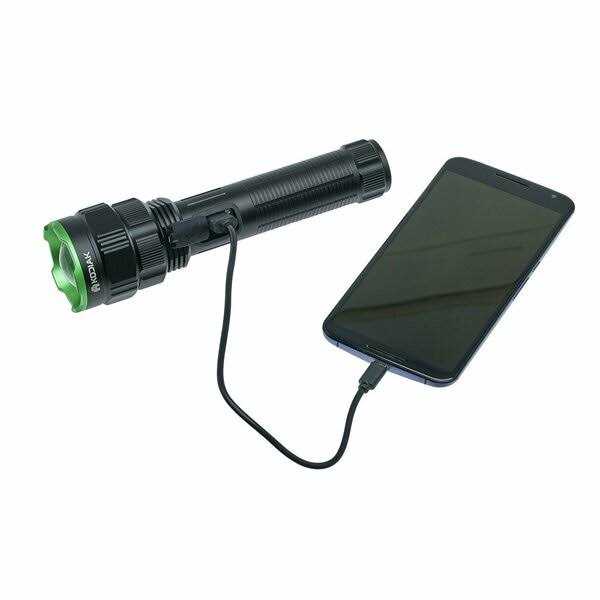 The Kodiak Nearly One Mile Beam is a powerful flashlight that can illuminate up to 4921 feet. Choose from two brightness modes up to 1000 lumens with push/pull focus and a safety lockout mode that prevents unintended operation and overheating. The long-lasting rechargeable battery also doubles as a power bank to charge your phone on the go or during power outages.
