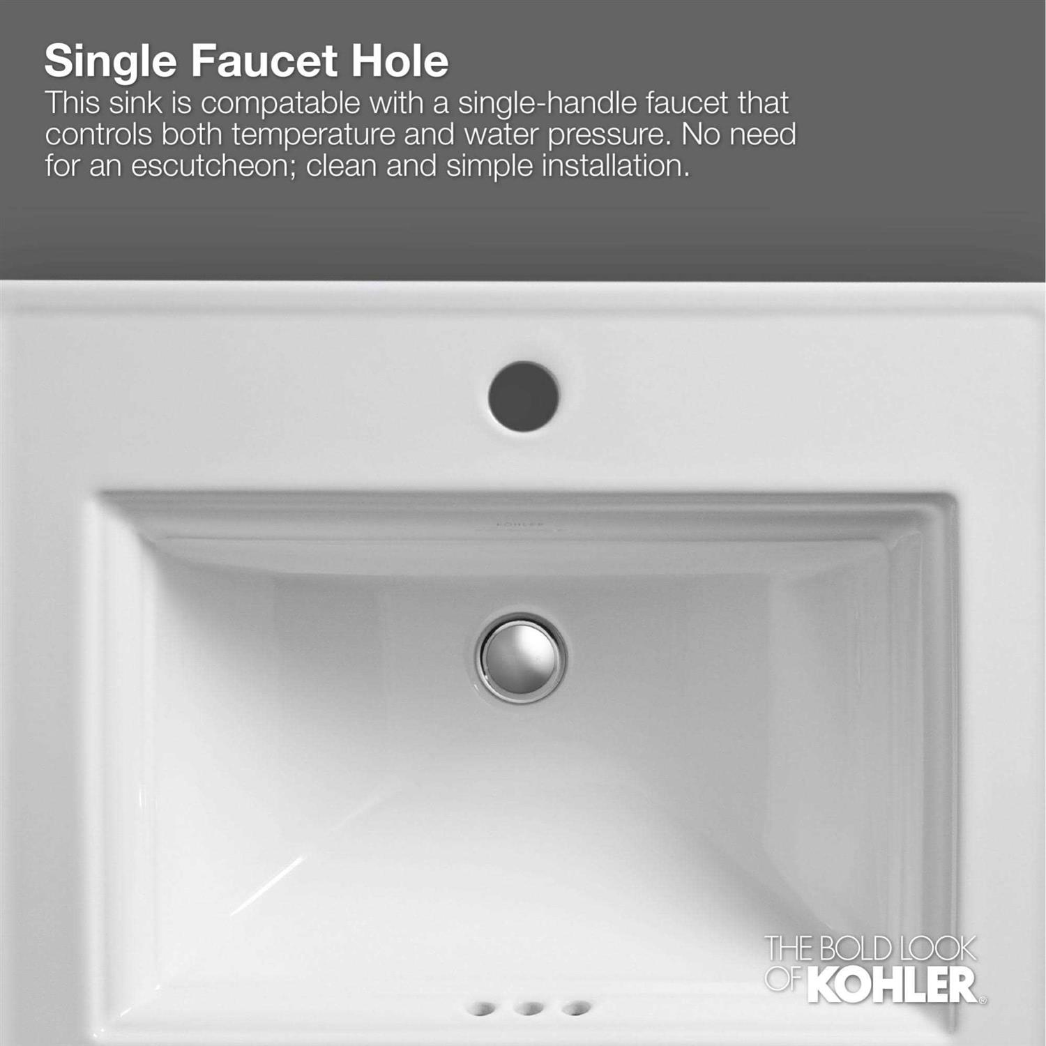 Kohler K-2714-1-0 Bryant Round Drop-In Bathroom Sink with Single Faucet Hole – White