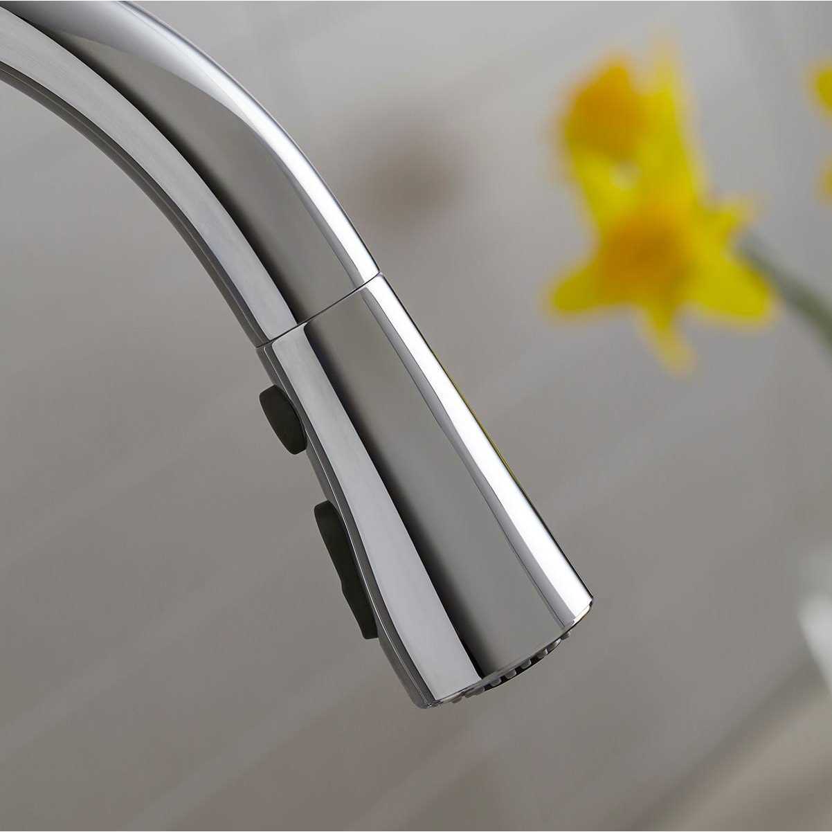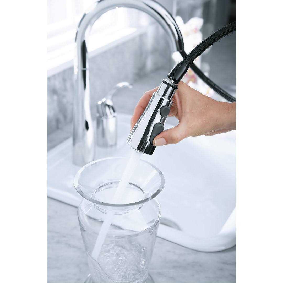 An innovative fit for a variety of kitchens and tasks, this Simplice bar or prep sink faucet combines an elegant, universal design with exceptional ergonomics and functionality. The high-arch swing spout rotates 360 degrees, while the smoothly maneuvering sprayhead pulls down into the sink for up-close tasks, or out of the sink to fill pots. Sculpted buttons on the sprayhead ensure simple operation even with wet, soapy hands. Sweep spray creates a wide, forceful blade of water for superior cleaning. KOHLER’s docking system, DockNetik, secures the pull-down sprayhead to the spout.