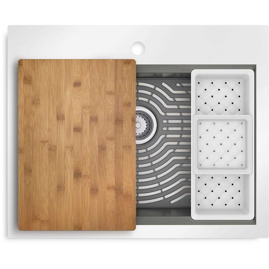 - Customized Accessories: Sink includes bamboo cutting board, colander set, silicone sink mat, and sink strainer made to fit perfectly