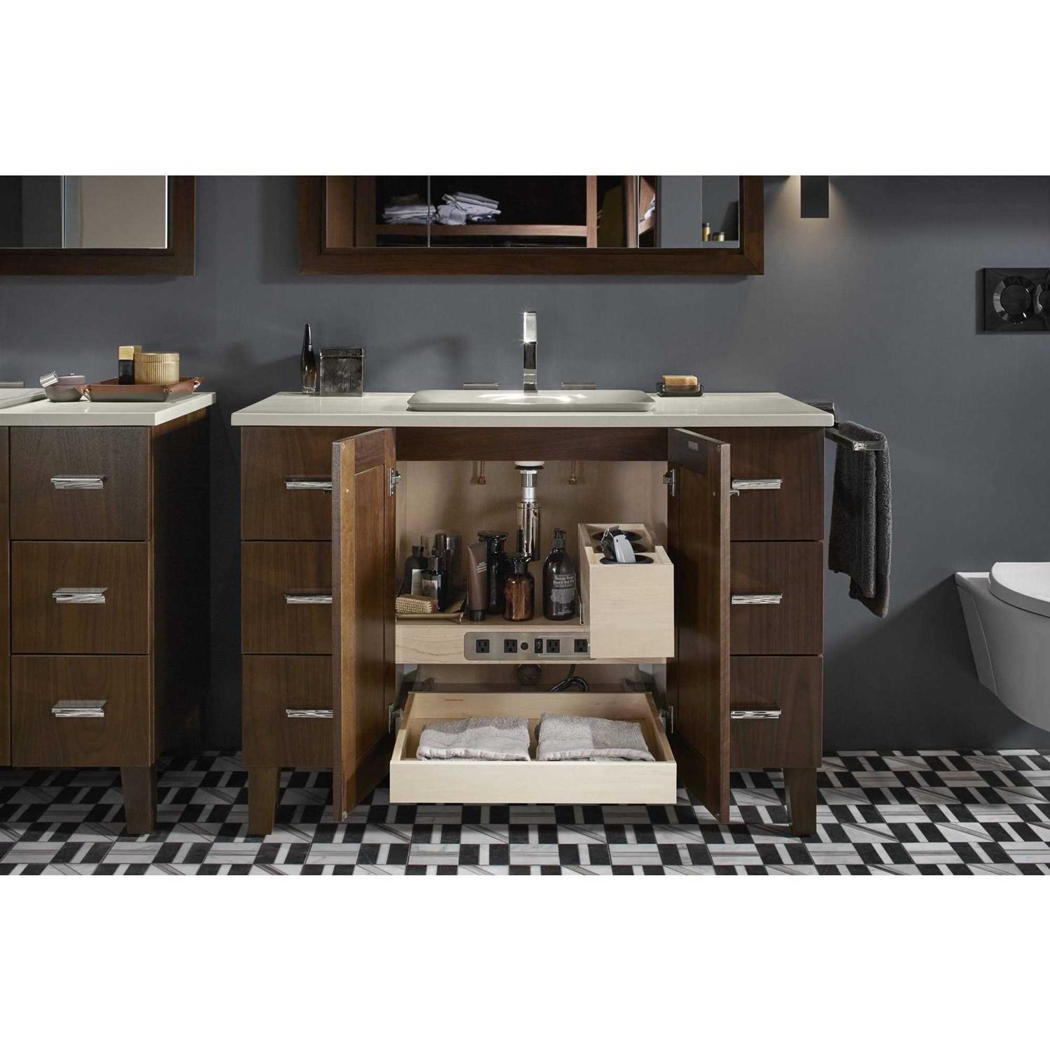 Kohler K-99678-SH10-1WR Adjustable Shelf with Electrical Outlets for 48″ Tailored Vanities with 2 Doors, 6 Drawers